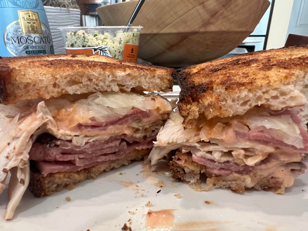 Deli meats, sauerkraut, Russian dressing, sourdough