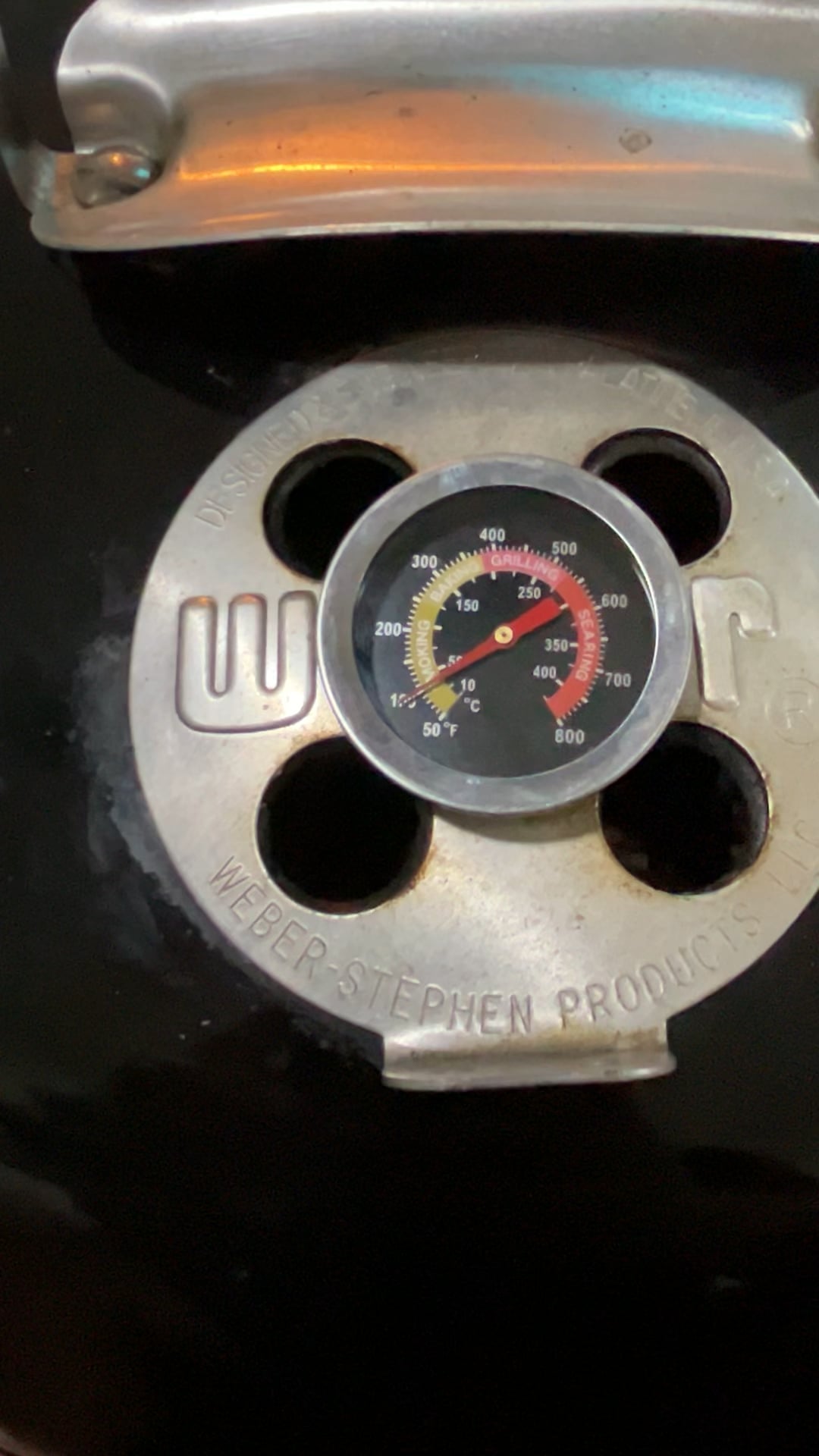 You are measuring the temp of the exhaust, which will be hotter than what the food is actually experiencing 4 inches below the therm. But this is no worse than Weber’s idea of placing the therm directly above the flame in an indirect heat setup. You are measuring extremes with either setup.