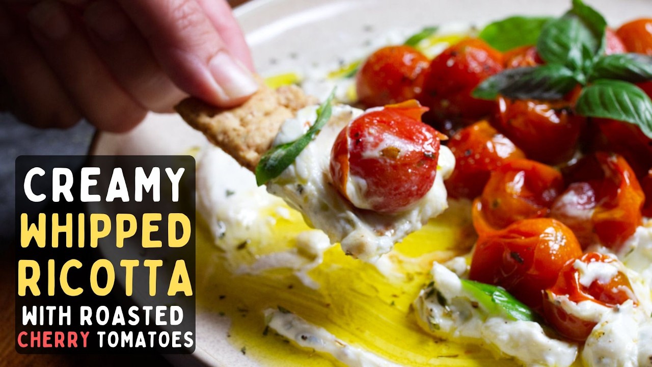 Make this creamy whipped ricotta with roasted cherry tomatoes – an easy, Mediterranean appetizer that’s light, flavorful, and ready in minutes! 🧀🍅