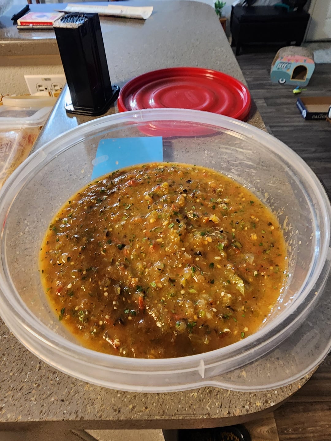 Broiled at 500 in the oven for about 12-13 minutes, then put into a food processor along with 1 lime worth of juice, cilantro, salt and pepper. I'm very proud of my first attempt. Perfect spice level.