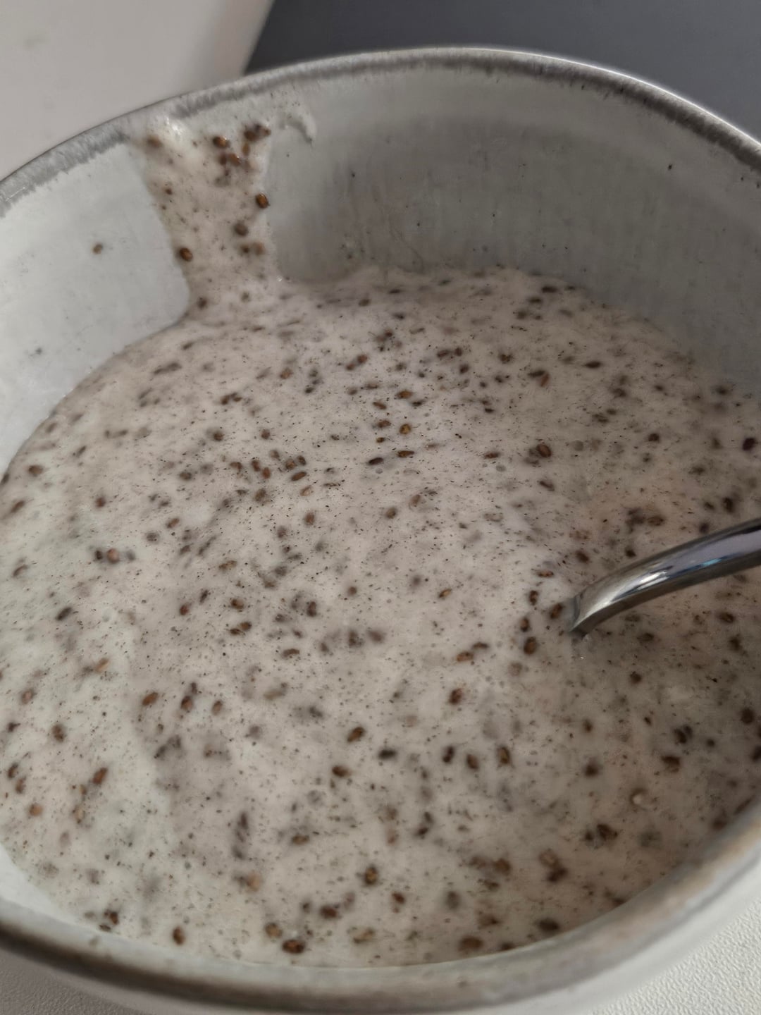 Breakfast: coffee and trying some chia pudding. I took a tip from this sub and tried soak/blend/fridge, and honestly hated it. Blending didn't pulverize the seeds like i hoped it would, and instead separated the seed from the gooey coating it gets while soaking and blended the goo with the coconut milk, making a sort of slime that was a textural nightmare. I need to eat this bag of chia seeds, and so far the pudding is the only thing I can stomach. Im good to suffer through it because of the "bathroom benefits" – I take medicine that causes difficulty here, and chia absolutely obliterated the problem for the rest of the week. Any chia pudding tips are greatly appreciated.