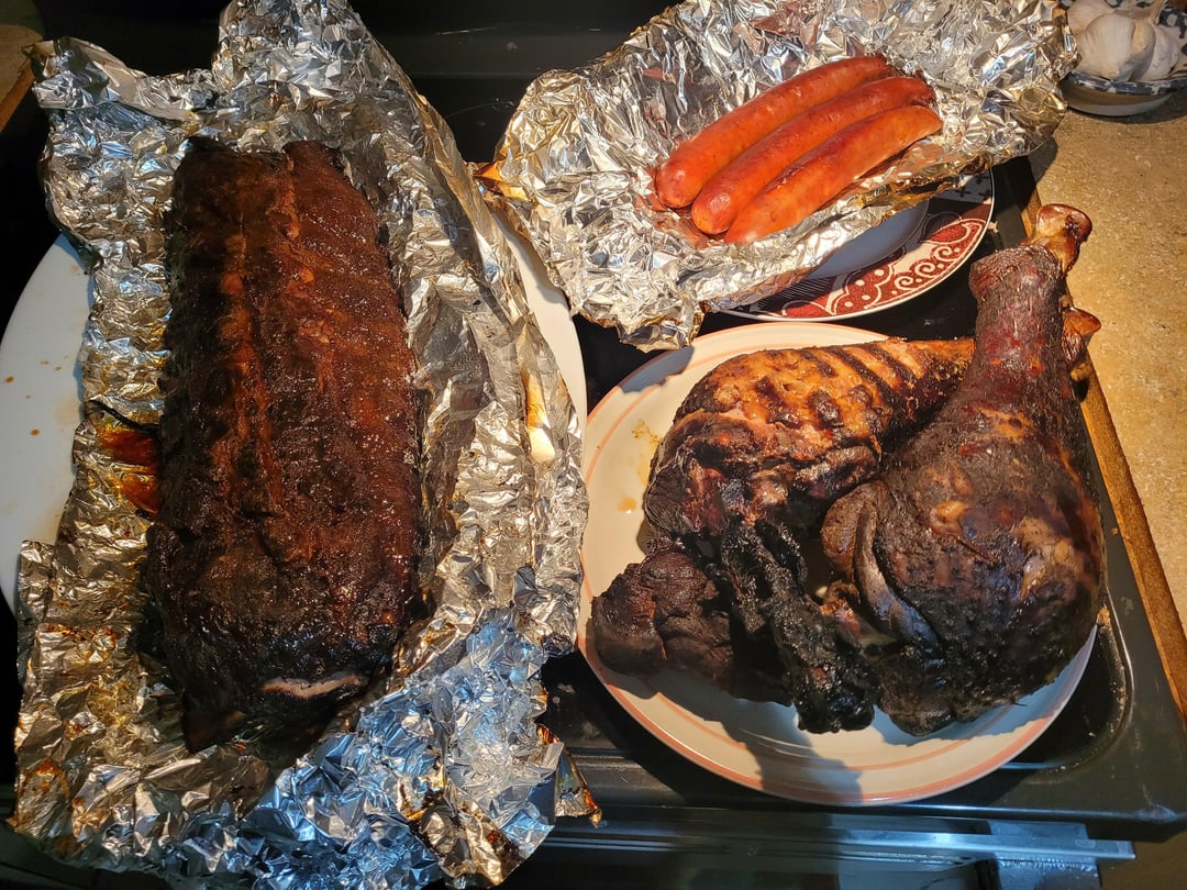 Before and after…baby back ribs made w/home-grown honey, home-grown turkey legs (7bs), and andouille sausage smoked with hickory, cherry, and appleby ava_daru_xxx Dining and Cooking