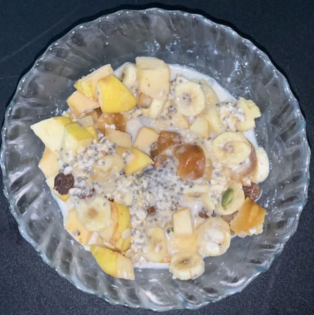 Today’s Breakfast Soaked Oats in Almond Milk and Fruits