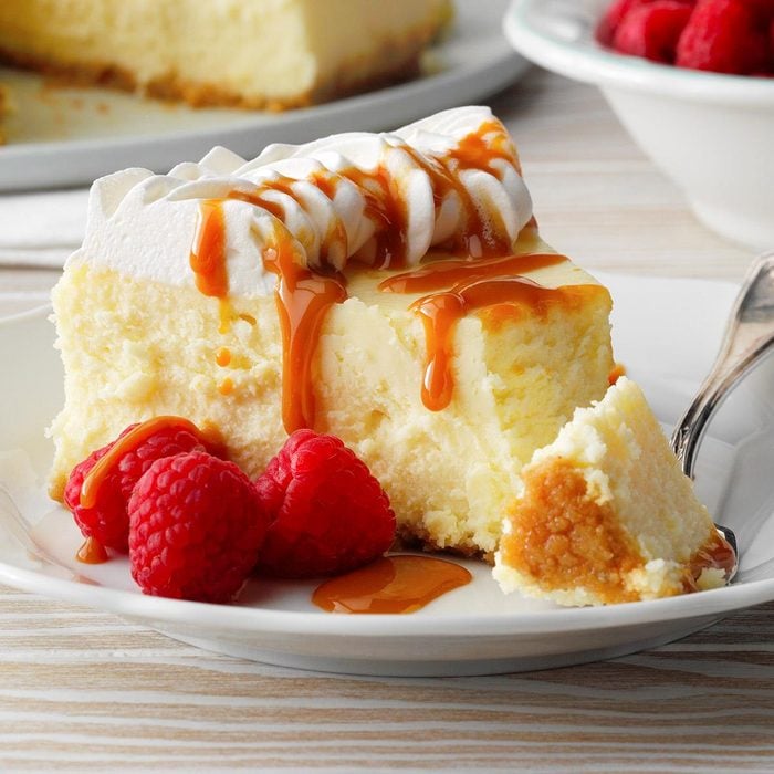 Sometimes the best-loved recipes are the most basic. Just ask my family who raves over this classic amaretto cheesecake. It’s rich, creamy and versatile to boot! —Barbara Caine, Sussex, New Jersey