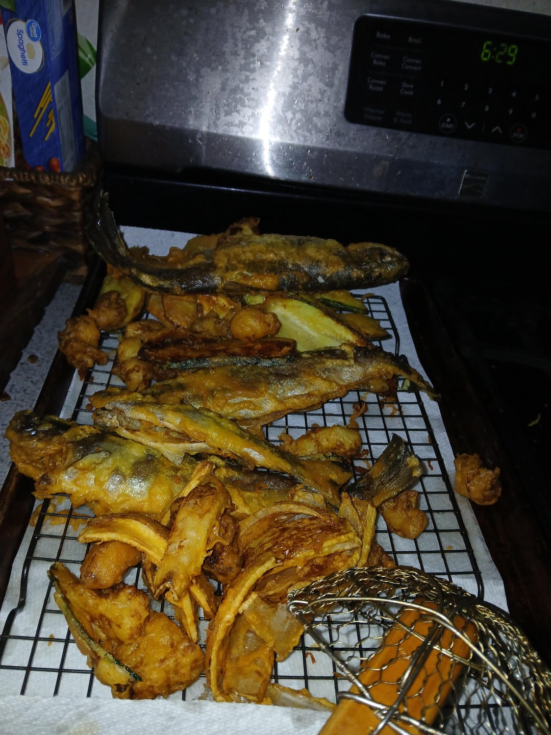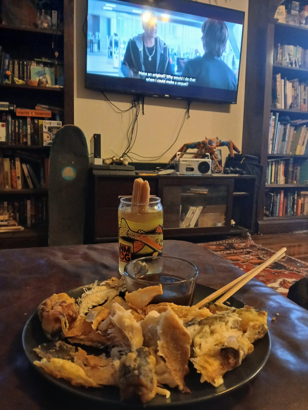 Trout tempura. Sorry for the singular beer, but I assure you that several were consumed prior.