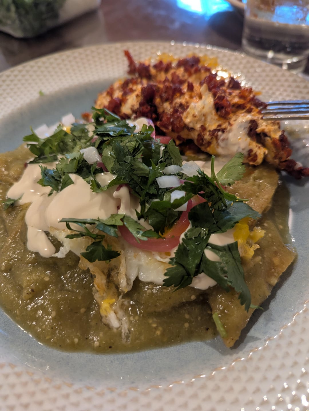 Made chilaquiles for the first time. Made the roasted tomatillo salsa and pickled onions from scratch and fried the totopos. I will purchase totopos in the future. One has fried eggs, one has eggs with queso Oaxaca and chorizo. by CobraBubblesJr Dining and Cooking