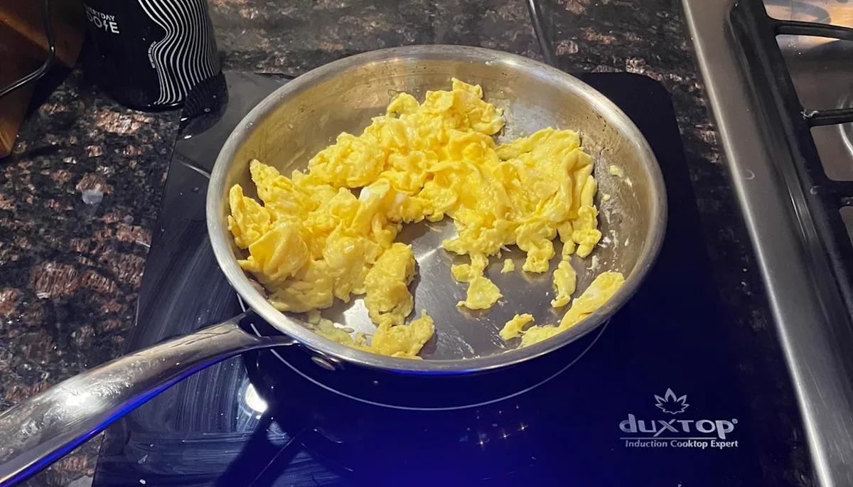 In a post on the Chicago Environmentalists page, user Joseph Lynn shared a picture of his recently purchased induction cooktop, complete with scrambled eggs in progress on top of the stove.