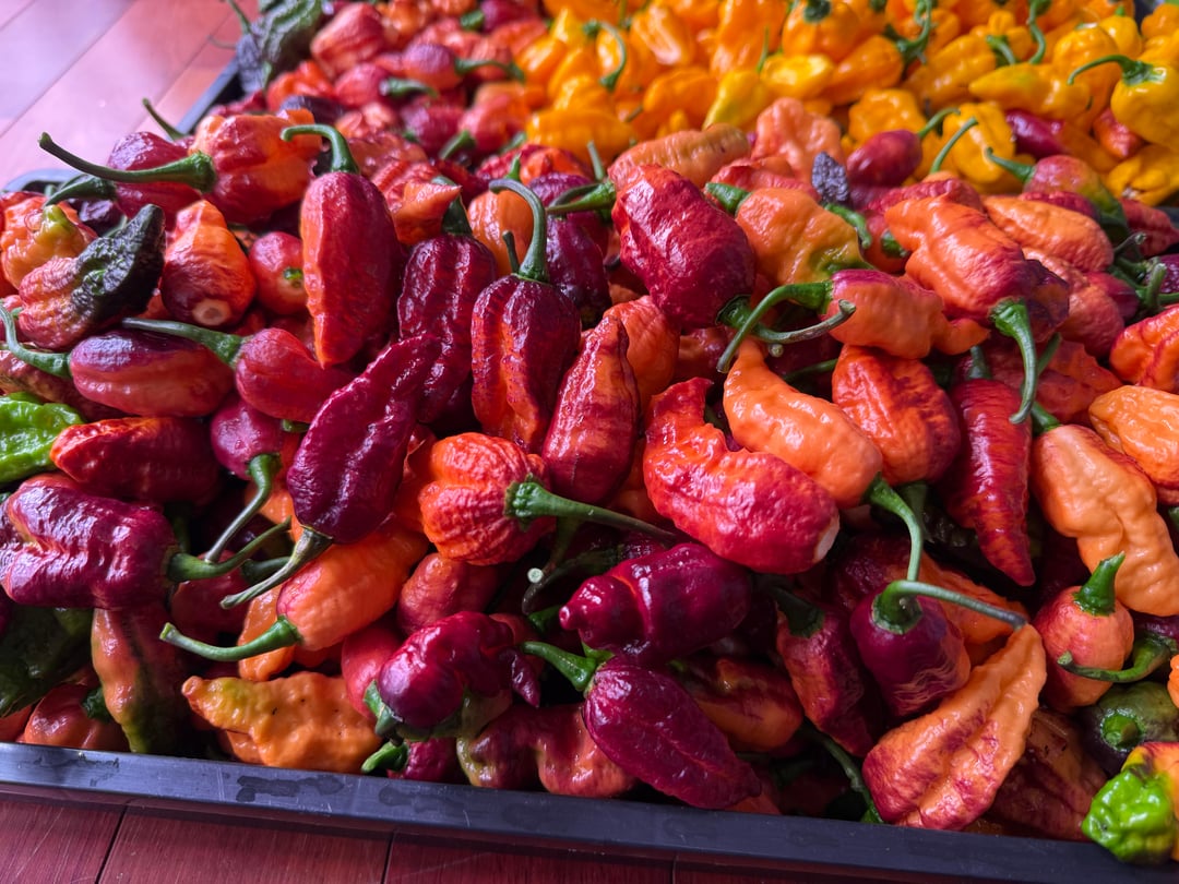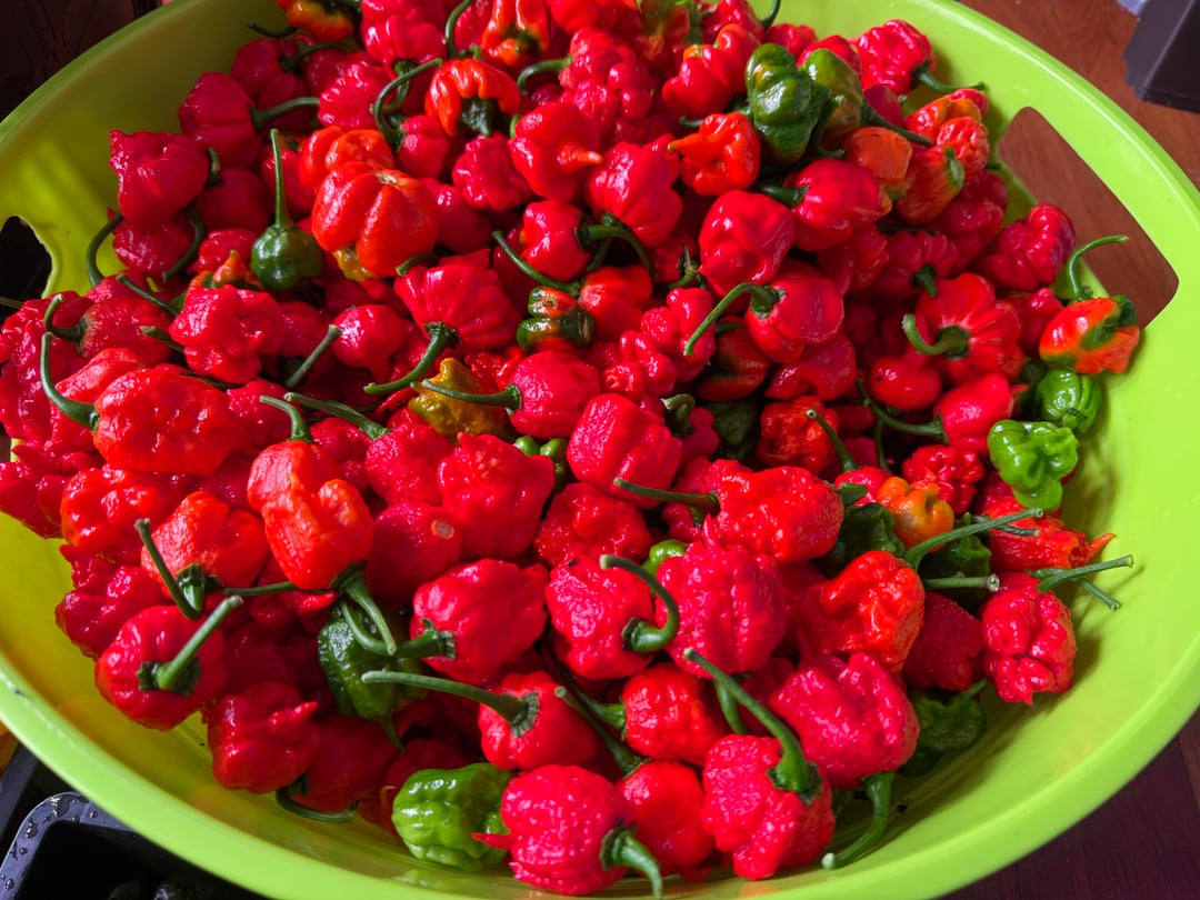 The usual. Habaneros in the basket are taking a beating with the heavy downpour lately. 282 chocolate habaneros picked bringing the total around 850+/- from a single plant, stoked. A lot will be harvested soon. Canada 🇨🇦