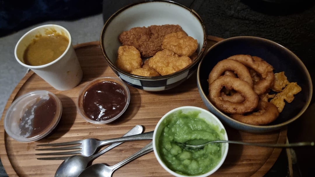 Haddock & chips chicken fillets & nuggets onion rings mushy peas curry sauce 🌟