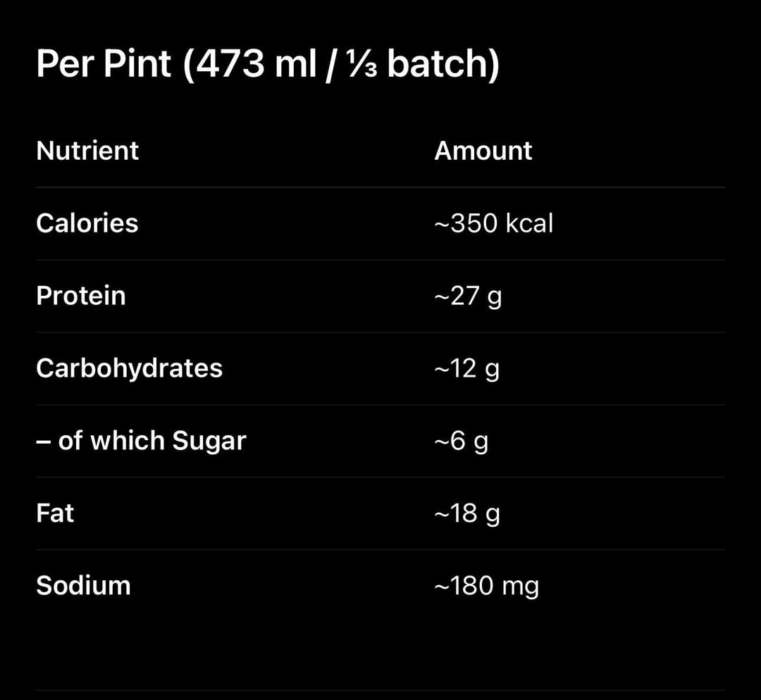 Serving-wise, I ate about 2 of the 3 scoops in that picture. I’m 3 hours past finished eating and I’m still full. I’ll attach the per pint nutrient facts too