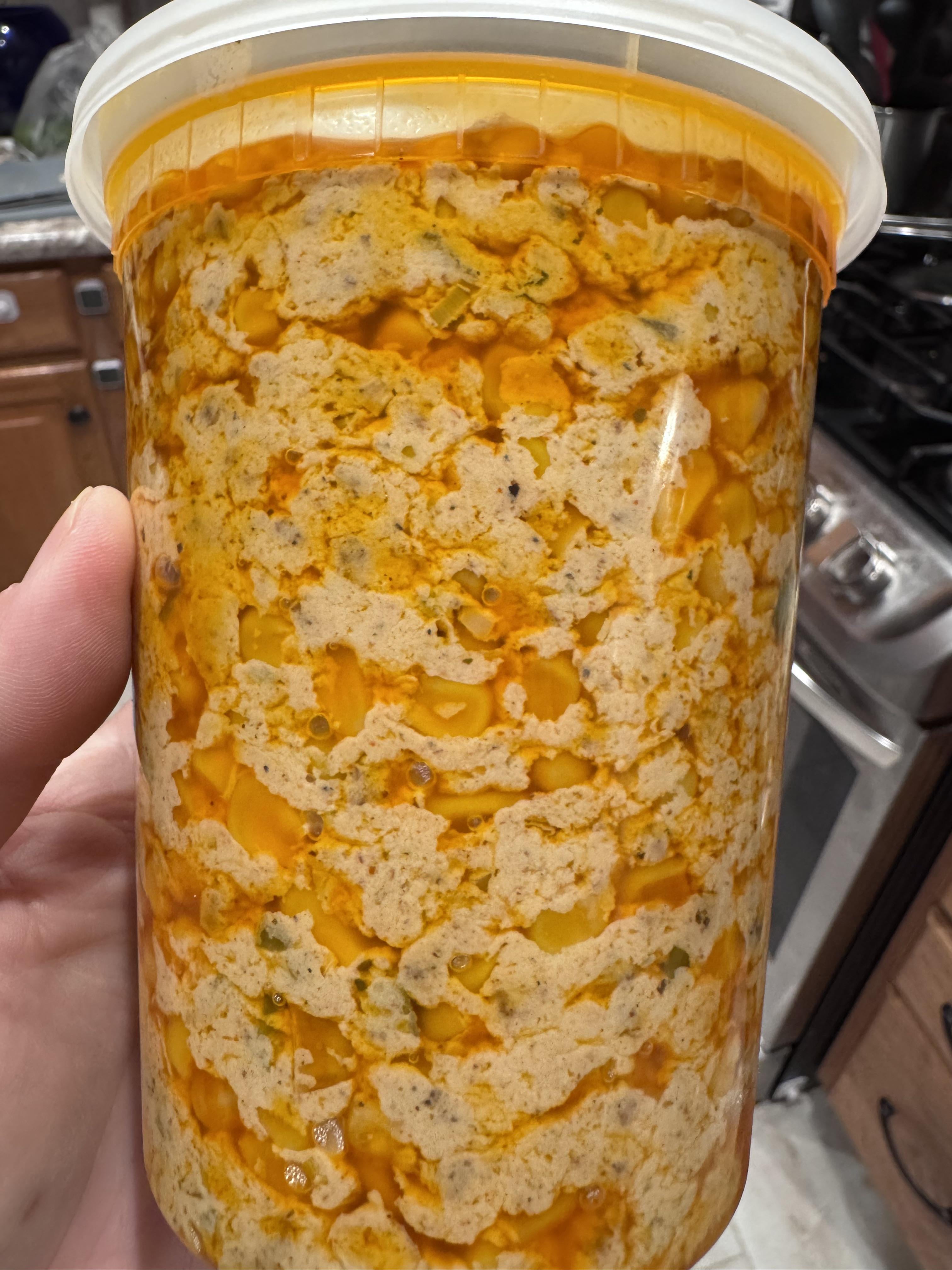 I was making this jalapeño corn and cheese dip for a friends vacation, and it was coming together well, but it broke and now looks like a crime scene.