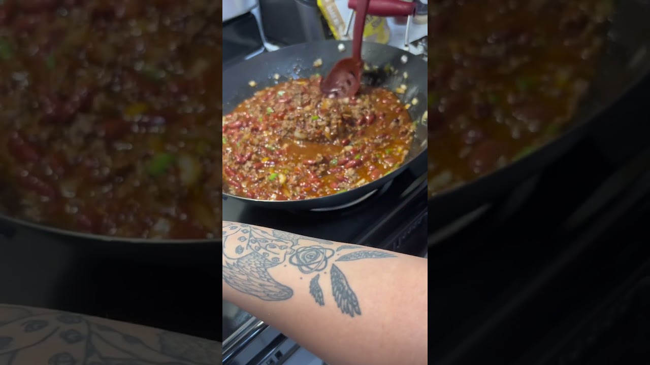 So, we got chopped onions, chopped bell peppers. I added my meat into the walk, and then I added in my seasonings. So, today I’m just showing y’all how to make some homemade chili. And I’m just showing y’all everything that I use to make my homemade chili. And so, once I add everything together, I’m just going to mix it up and then I’m going to let my meat brown. And the reason I’m here today, y’all, making this video is because I got fired from my job and these bills don’t pay themselves. So, I’m here making content with y’all, showing y’all how to make some homemade chili. Um, so next, I added some saison. And then I went in with my chili mixes and I added my Rotel, my kidney beans, and my tomato sauce. And then we’re just going to mix everything up. And then over to the side, I got my crock pot heating up because I like to add my chili mix into the crock pot and let it simmer for about an hour or longer depending on like the consistency. I like mines a little bit thicker. I don’t like it too runny. Um, so I like to let it sit in the crock pot. And then, as you can see, I added some brown sugar to my chili just to balance out all the seasons. You know, you don’t want too much spice. Got to add some something sweet in there, too. Um, and then me and my kids, we love Jiffy cornbread, so don’t judge me. I made us some cornbread to go with the chili. And I also like to use saltine crackers, so you can use that as well.