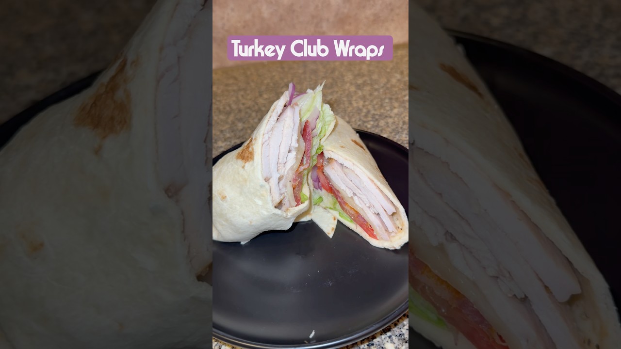 Tonight we had turkey club wraps. Starting off the night before, I went ahead and cleaned my turkey breast, which is boneless. And then I prepared my brine with the seasonings you see on the screen here. And I added some hot water to dissolve everything in some cold water to cool it down. Then I put my turkey breast in there and put the lid on it. I labeled it and I let it set overnight. Then I went ahead and got my baking sheet lined with parchment paper and I laid the turkey breast on there. And then I just seasoned it with those same seasonings, just a light layer over the top. Then I put that in the oven on 375 to cook. And I went ahead and started prepping my bacon. And now today I’m just using some thin sliced bacon regular and just laying those in a single layer across my baking sheet so that they’re not too thick for the wraps. And I just placed that in the oven as well. And those normally cook faster than the turkey. So just going to keep an eye on that. Then I went ahead and got my lettuce, tomatoes, and red onions. And then I just started with the lettuce and I cut off the bottom, cut it in half, and then I just peel back all of the like leafy layers until you get to like the main kind of core part. And I just set that aside and use it for salads later. And I cut those halves in half. And then I wash those off as well as the tomatoes. Then I cut off top and bottom of the onion, cut it in half, and then just cut it into really thin slices. And then I repeat that same process with the tomatoes. And then I set everything aside. By this time, the bacon was done. So I took that out. And then once my turkey reaches an internal temperature of 165, I pull that and let it cool completely. Then I went ahead and removed the skin off the top. And then I thinly sliced this turkey breast all the way. And as you can see, it is very juicy and super tender. Then here are all the slices laid out. And then I went ahead and got the other things I needed for the wrap, which was tortillas, cheese, and I forgot to show these, but candied jalapenos. Then I just layered everything. Tortillas, turkey, cheese, melted bacon, tomato, onion, lettuce. Wrap it up, cut it in half, and there you have it. Hope you guys enjoy. If you try it, let me