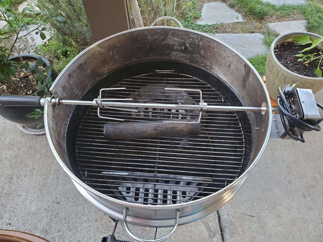 Quite the steal with the rotisserie kit included. One thing I have to mention because my OCD is acting up, but the bowl is misaligned, one of the handles should be aligned with the front leg. Easy fix, you just need to yank the legs off an rotate the bowl so it’s right. 😉