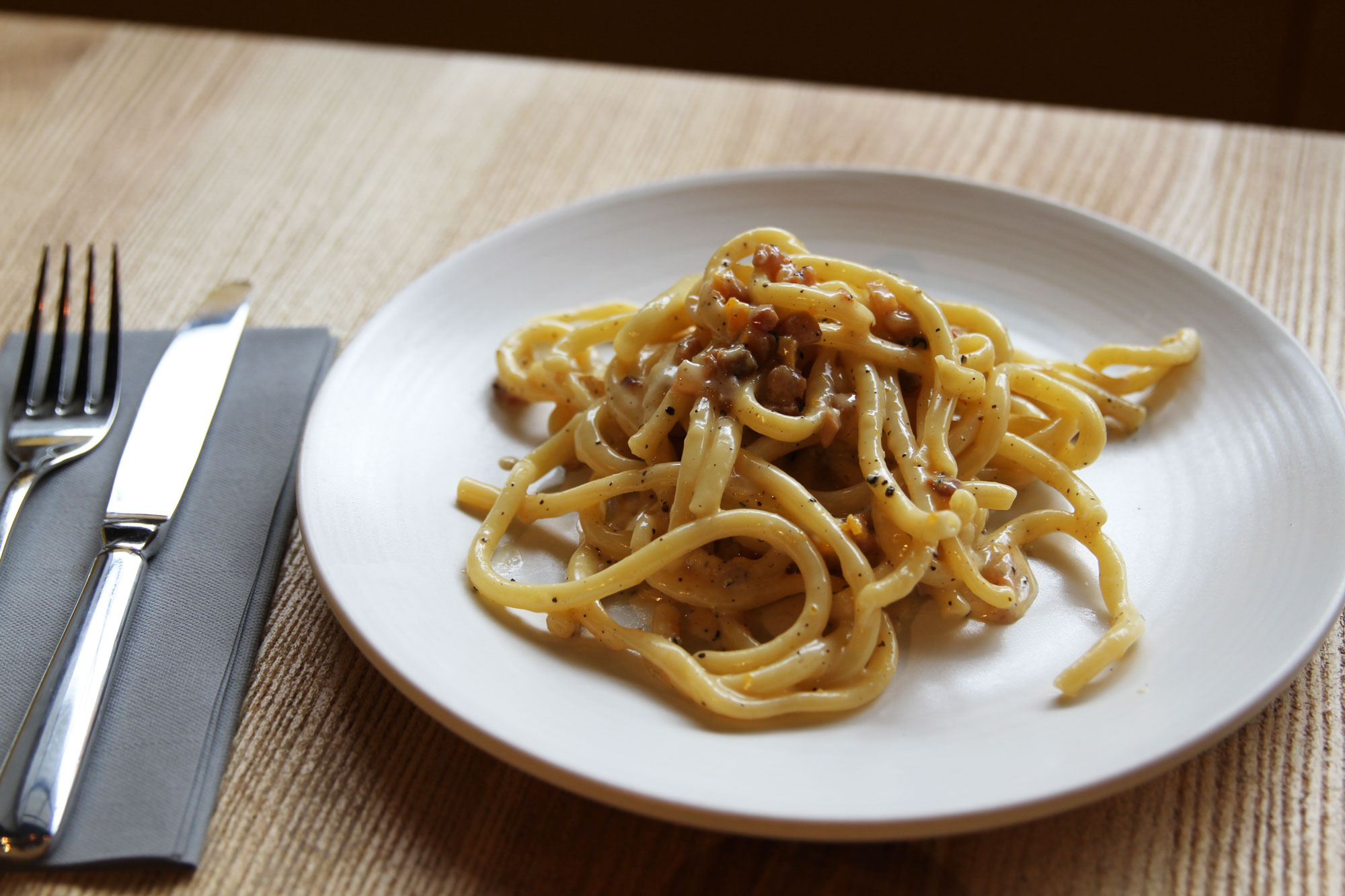 Between Palatino’s standard morning offerings of avocado, toast with jam, and fruit sits a more unusual breakfast dish: bucatini Carbonara. That’s right, at Palatino, you can have your pasta for breakfast, and eat it.