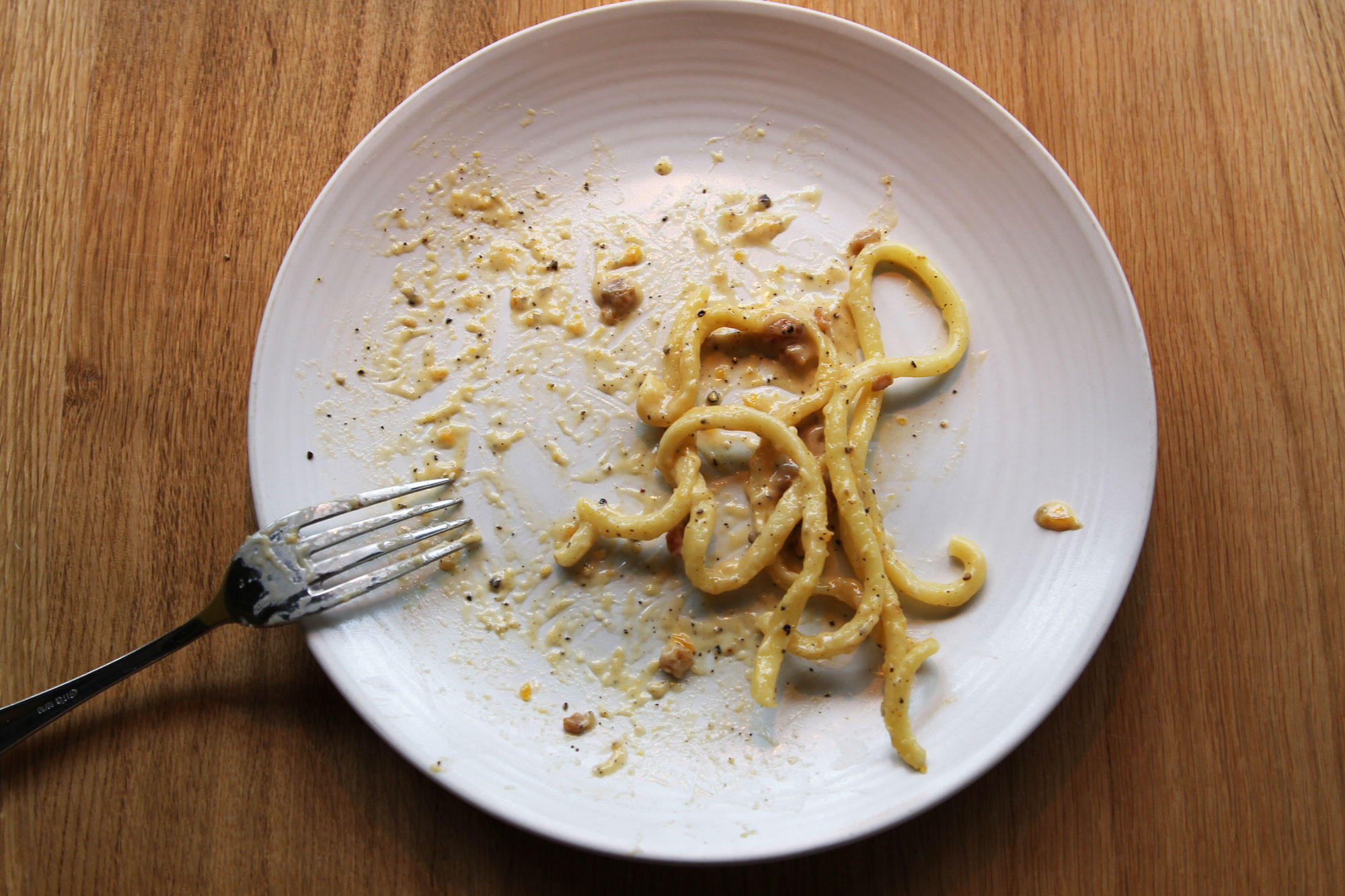 I’ve already hoovered up half the plate before he’s finished speaking. Turns out that Carbonara is indeed the breakfast dish I never knew I always wanted.