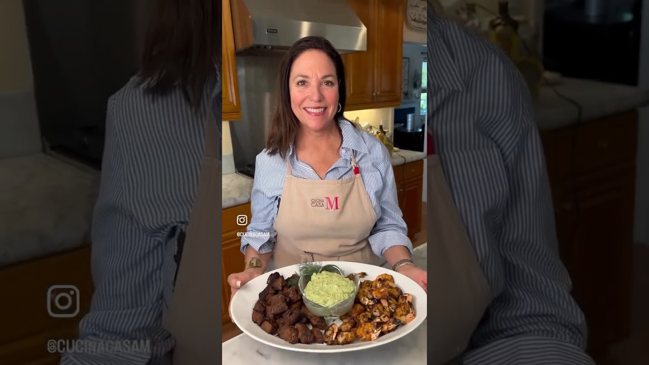 And then comes the magic: my avocado tzatziki sauce-cool, creamy, and herby with just the right tang. It’s the perfect contrast to the warm spices, spooned over the beef and shrimp, or served as a dip with pita chips and fresh veggies for an easy appetizer. Honestly, it’s so good you’ll want to put it on everything.