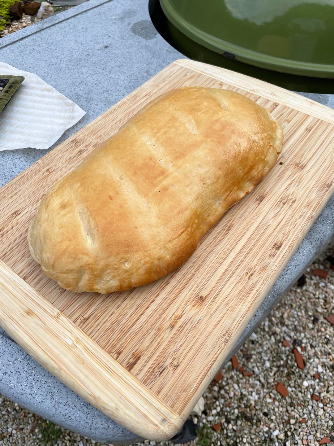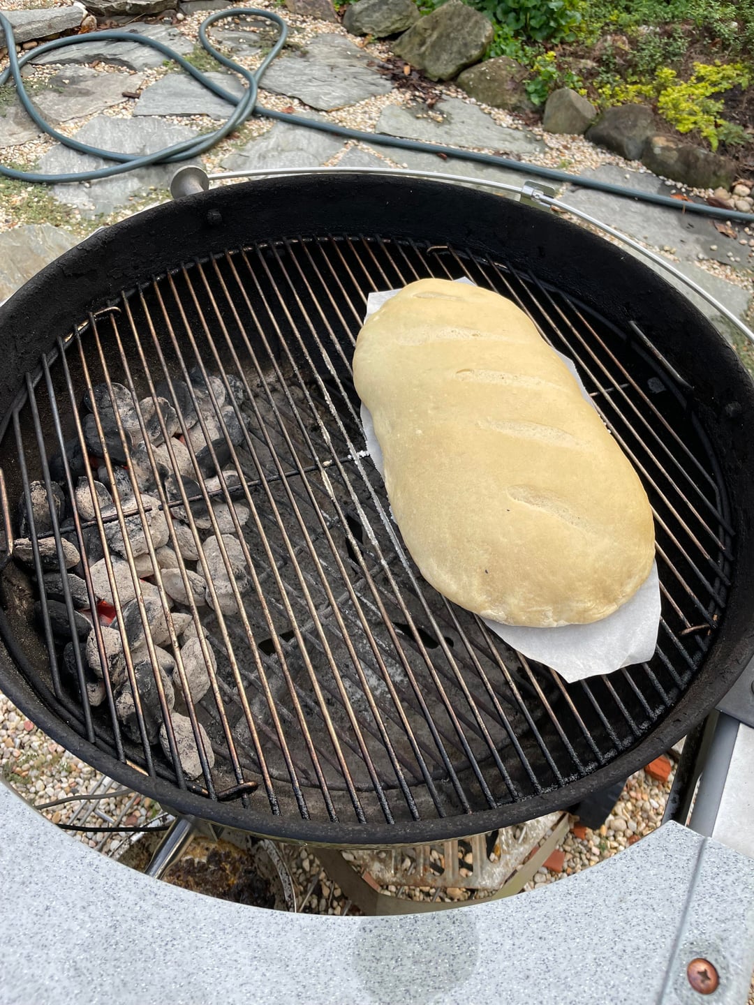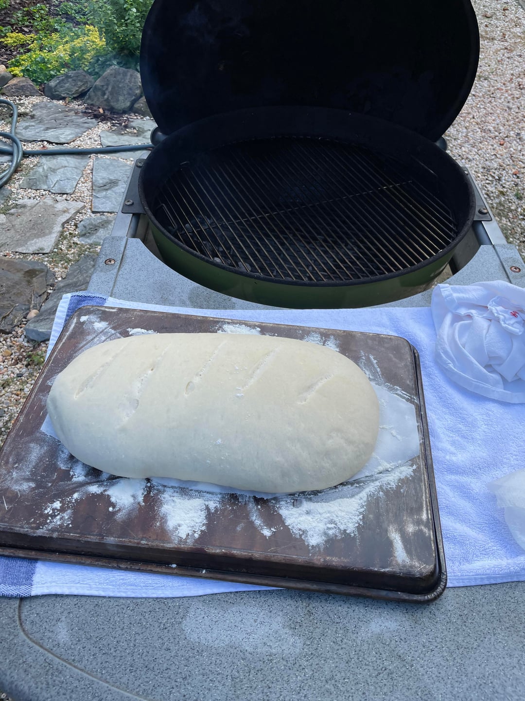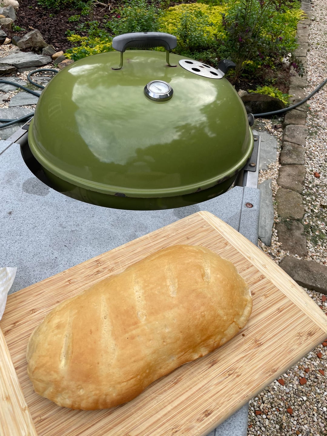 This was my first attempt on the Weber making bread and made the mistake of not preheating the grill, but it wasn’t bad. I had another loaf in the oven at the same time which turned out beautifully. The flavor is legit wood fired pizza bread. I know what to do next time.