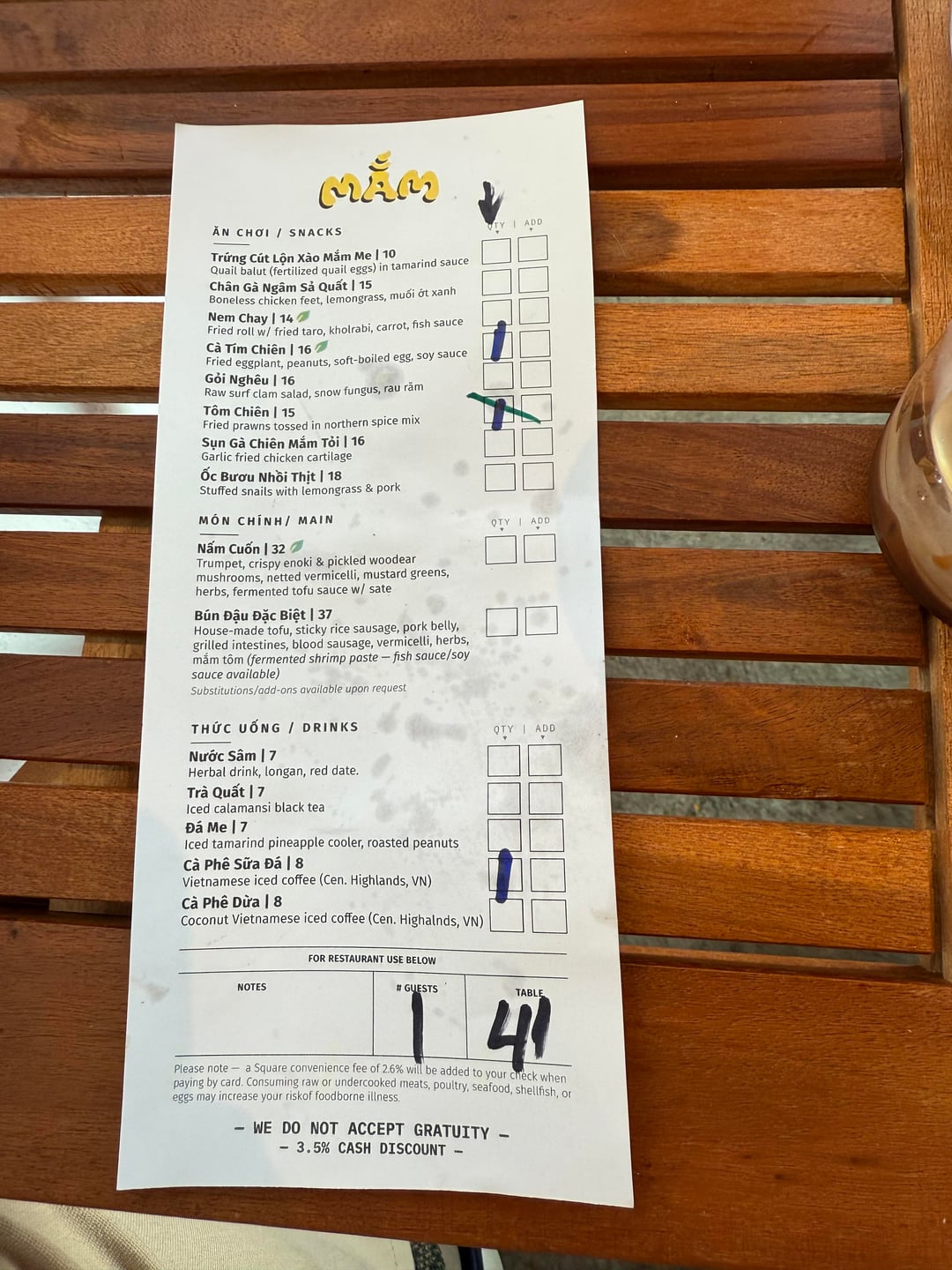 Service was very quick and super friendly despite the place being packed. They offer a cash discount and do not accept gratuity. My only regret is not being hungry enough to try two apps and an entree. The tables were very fun if a bit gimmicky, but eh, who doesn’t like a good gimmick and the grandmas sitting down outside and laughing certainly have no qualms with it.