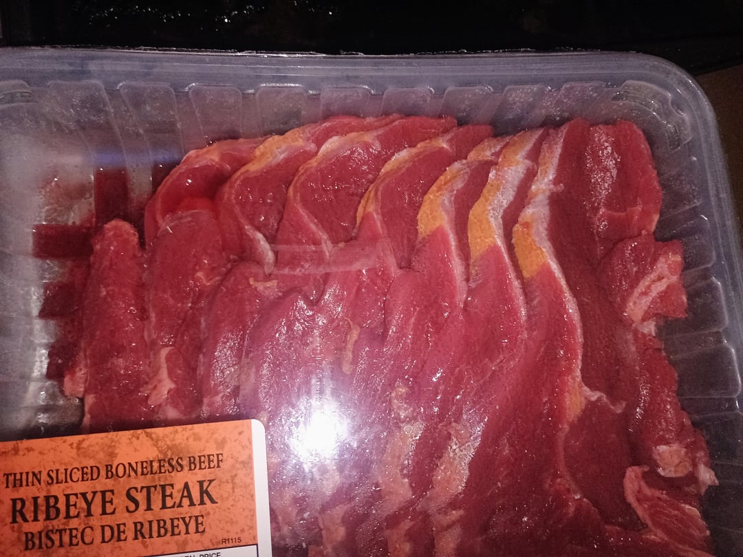 safe to eat, as its probably something the animal ate, feed or maybe grass fed? but those the leanest ribeyes I have ever seen