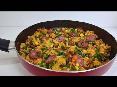 Essa receita de arroz com calabresa e bacon é muito pratica é gostosa, é uma refeição de uma panela só, seu almoço em em 20 minutos.