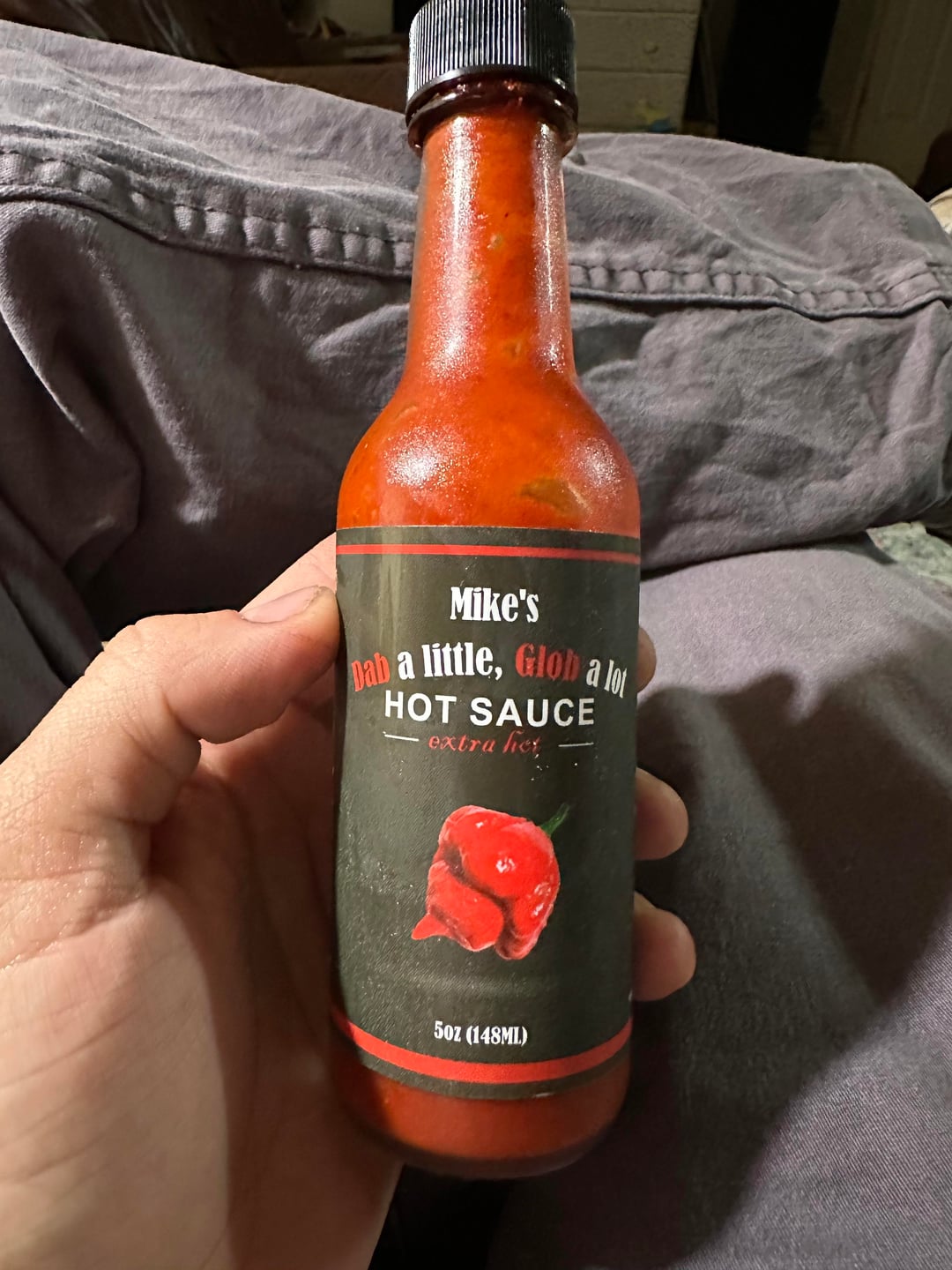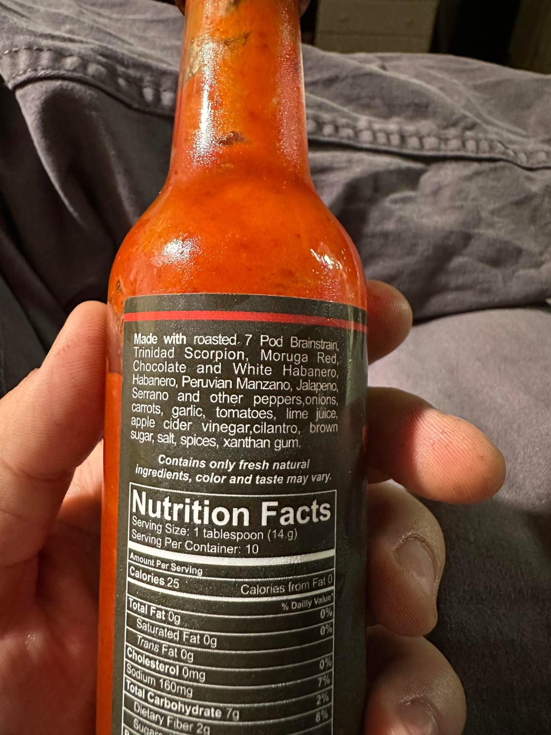 Hello everyone! I’m new to this community. I thought I’d share this hot sauce, someone I know makes this out of his home, it’s really good! by Dizzy_Gear1466 6 Comments yentlequible 2 months ago You have my attention. No-Formal9815 2 months ago Dang that is quite a pepper list for a homemade sauce! ChaoGardenChaos 2 months ago What pepper is in this sauce?Yes Exsufflicate- 2 months ago If that sauce is anywhere near as hot as it seems, 1 tablespoon per serving is insane. Big_Dirt_Nasty 2 months ago 7 bucks or 20? Sad-Cryptographer828 2 months ago Sounds wonderful. I must find some.