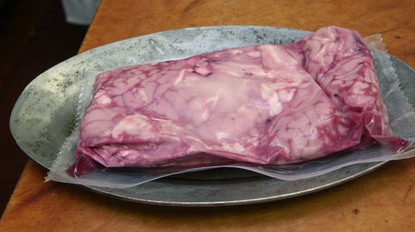 Lachowicz describes calves’ brains as “misunderstood. People get very squeamish, they think of Hannibal Lecter, they think of science experiments and cows on torture chamber walls. It’s ridiculous. They’re beautiful.”