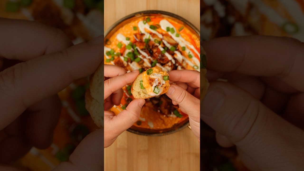 Everyone’s doing buffalo chicken dip wrong. Here’s how to actually make it good. Today, we’re making hot honey ranch buffalo chicken dip. And this version will change the way you make it forever. We’re starting with the simple buttermilk, hot sauce, and seasoning mix to marinate the tenders. Next, we’re assembling the dip. Mayo, ranch seasoning, garlic, cheese, hot sauce, and a squeeze of lemon juice all mixed together. Now, once it’s in a pan, we’re tossing it on the smoker at 275 for 30 minutes to let all those flavors come together. But here’s the real game changer. We’re frying our chicken tenders separately and adding them to the dip at the end. This keeps them insanely crispy while the dip stays creamy and full of flavor. Next, we’re moving on to this amazing sweet and spicy hot honey sauce. And just like that, you got the ultimate Buffalo chicken dip.