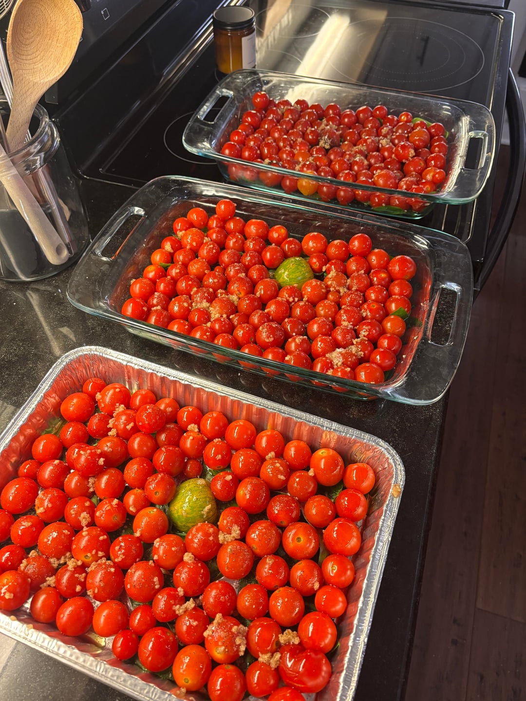 Oh man! Look at that color! That combo is unbeatable. Roasting brings out so much sweetness, those husky cherry reds are basically tomato candy after 30 mins at 400F!