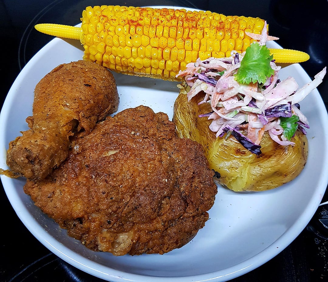 Need to Sell a Kidney for KFC These Days…. so I Made My Own. Fried Chicken, Baked Potato, Slaw and Corn….. Plus Lemon Flapjack Bars for Dessert!