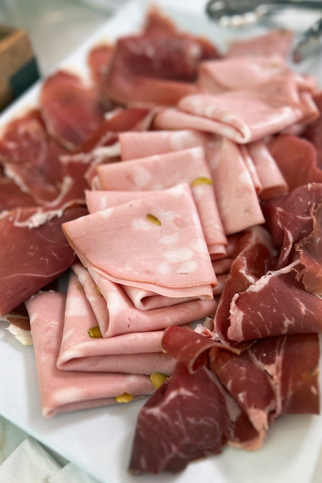 Fabbri speaks fast and enthusiastically as she sits at one of the outdoor tables under an umbrella. An “alimentari” is typically a family-owned small shop that sells fresh pasta and pantry items, and it was always one of her goals to have an alimentari where she can share authentic Tuscan food. In 2017, she and Mutul began selling porchetta sandwiches, made from whole roasted pig, at Bay Area farmers markets. Then, in 2021, they opened La Gastronomica di Porchetta, a sitdown restaurant in Marin County serving authentic Tuscan dishes. (Mutul also runs Pibil Marin, focusing on food from the Yucatán region).