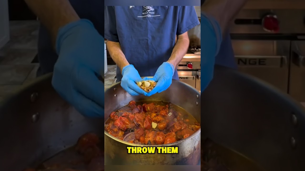 So, it’s snowing in the mountains. We’re doing roasted tomato soup and a grilled cheese sandwich on sourdough. We’ll start by getting these tomatoes prepped. I got a bunch of vine ripened tomatoes. I got these giant cherry tomatoes and I got some beef steaks. I’m just going to cut them into quarters. Just like that. We’re going to throw these down on the tray. We got them all. And I’m going to finish the whole thing with a little bit of these grape tomatoes. That looks perfect. Spread them out. Throw on a red onion. Just one onion. We’re going to throw in some garlic. I split these bulbs in half. We’re just going to push them down in there. We’re going to hit this whole thing with some olive oil. Let’s get a nice covering on there. It’s time to season them up. I’m going to start with a kosher salt. And I got black pepper. And I’m going to use dried herbs right now to start. We’re going to use some oregano. And I’m also going to put a pretty good layer of dried thyme on there as well. And I have some dried chili flakes. Got to have just that little bit of bite. That looks perfect, guys. That’s going to go in the oven. 450° for about 40 minutes. Oh, roastadoro. Just like that. Throw them in a pan. Squeeze out that garlic. This looks perfect. We’re going to throw this on the stove and bring it to a little simmer. I’m going to add in some chicken stock. We’re going to let this go for about half hour. Let all these flavors come together. We’ll go ahead and get in there and blend it till it’s smooth. You can use a blender. I’m going to use my stick blender. Just puree it. Move it around. Get it nice and smooth. Then we’re going to finish it. I have some more salt. Just another pinch. I have some fresh basil. Just stir that around. We’ll let that simmer for about 15 minutes. Lastly, we’re going to add some cream. Just mix that up. I turned the heat off now. And I’m just going to drop in a little splash of some cherry vinegar. That’s going to be perfect balance for the acidity in this, guys. That’s it. Let’s make a grilled cheese sandwich. I got some sourdough. It’s all buttered up. It’s going down. We’re doing triple cheese. I got gouda, cheddar, and monster. Just going to flip this thing back and forth. I got like on a medium heat on my griddle cuz I don’t want to burn that sourdough, but I want that cheese to get melty. There was barely enough soup left for me, but I did get some. Sandwich goes down. We’re not even going to cut it, guys. We just rip it and dip it.