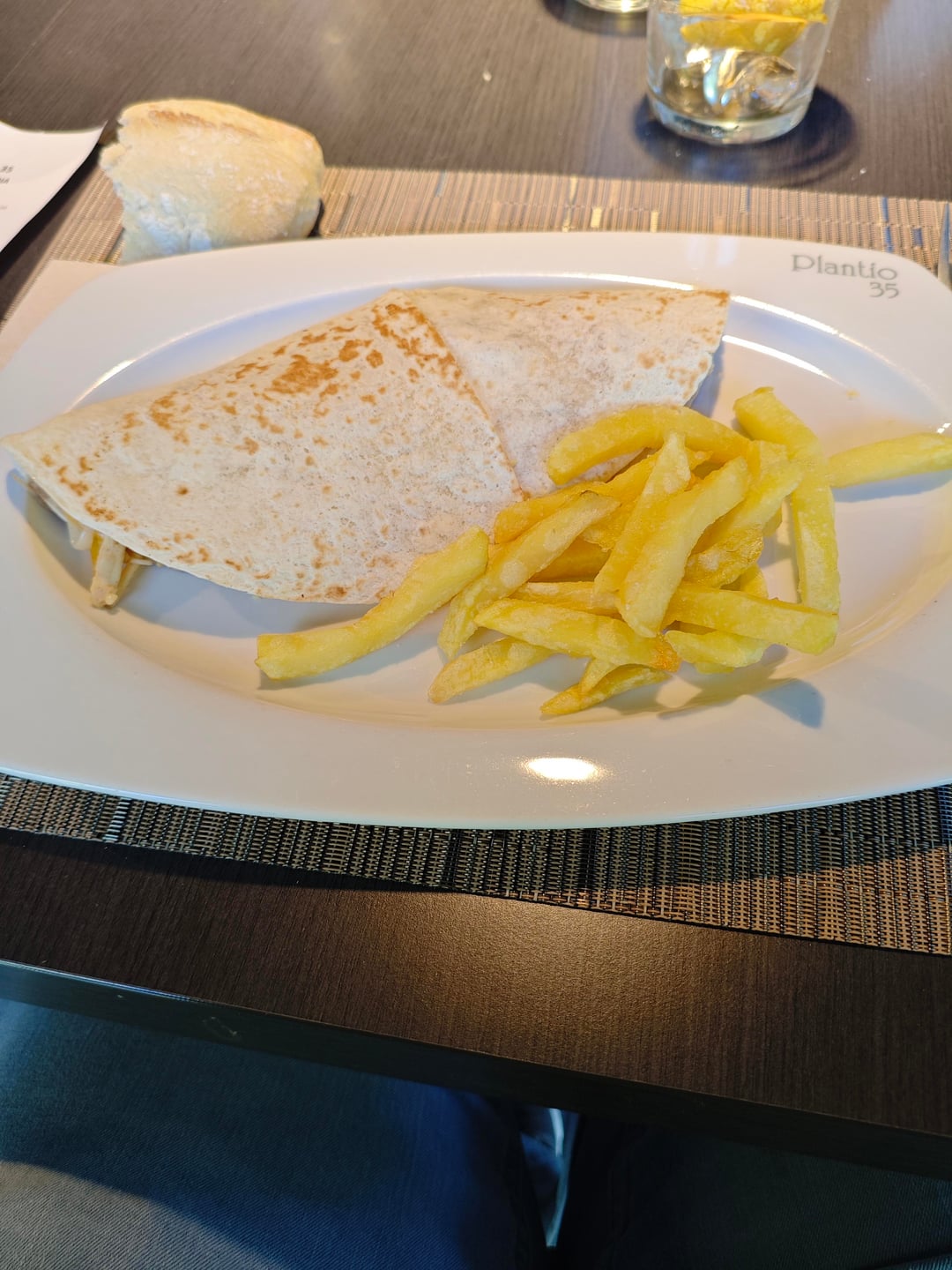 First I had some canneloni. I know it will be very caloric because of the bechamel and the cheese. The second is a chicken and cheese quesadilla with some fries (also a very caloric dish). To top It off, some vanilla ice cream. I estimate It to be around 1700 calories, dont know if that is an underestimation or an overestimation
