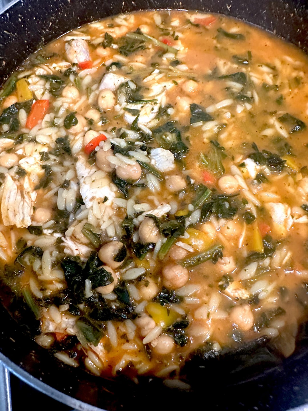 Spanish inspired simmered white fish with chickpeas. I added orzo to mine to make it a it more filling.