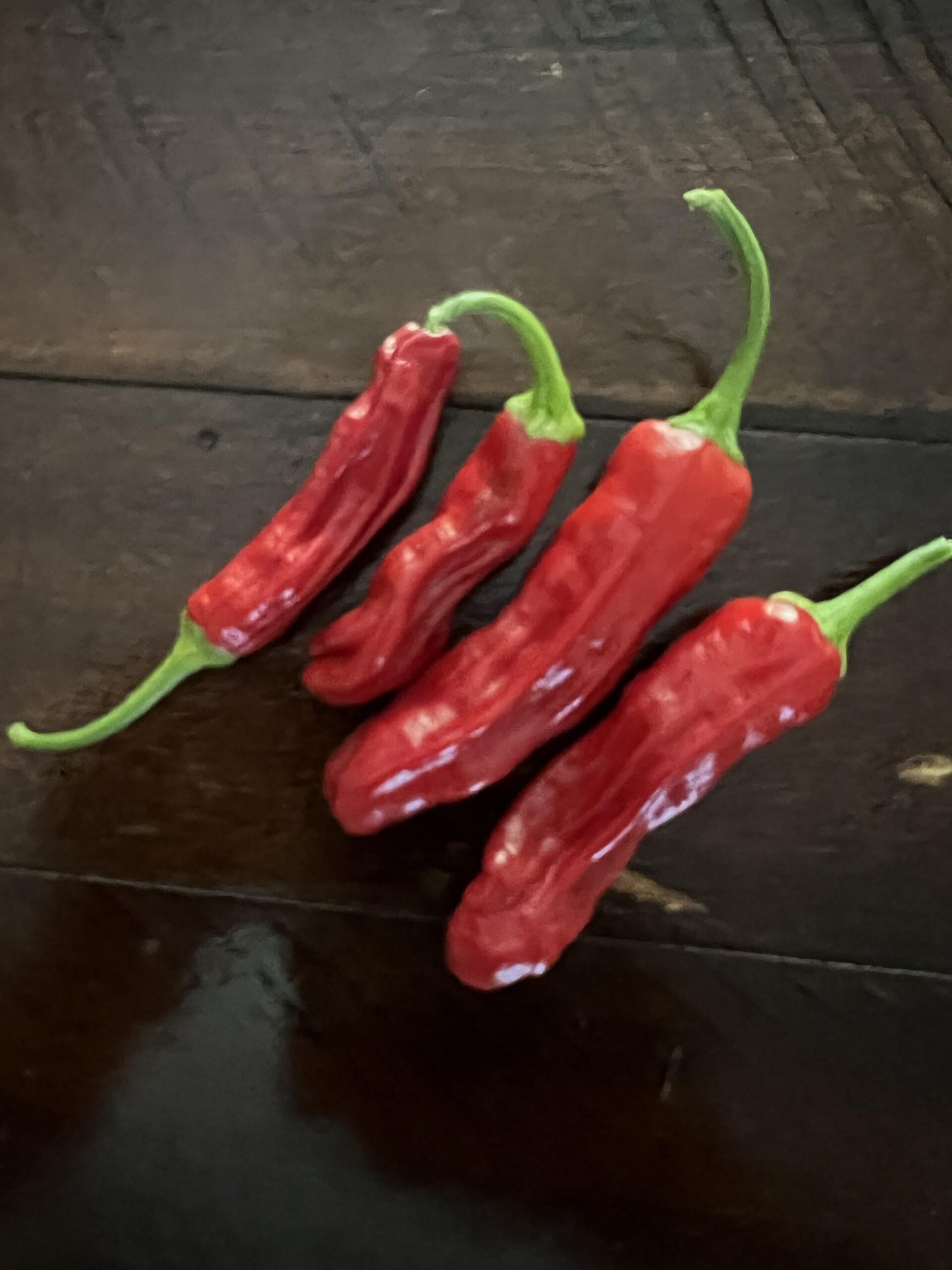 fun4days365 1 month ago Maybe shishito. Maybe red pepperoncinis. If they are spicy, than probably pepperoncinis.