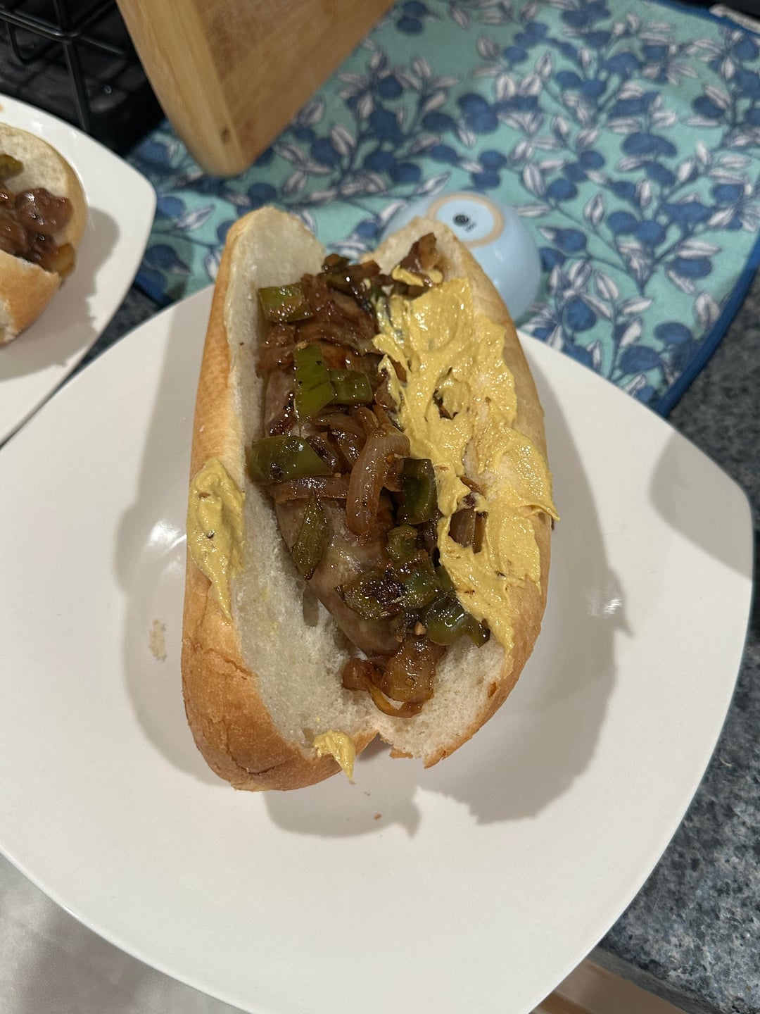 Cooked at 170 for an hour and then finished on the cast iron for 2 minutes on each side. We didn’t have brown mustard unfortunately but Dijon worked just fine.