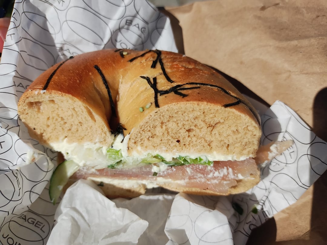 - Smoked tuna / wasabi cream cheese / cucumber on a miso bagel from Bagel Joint in Greenpoint – this had just the right level of wasabi flavor without feeling like I was going to burn up.