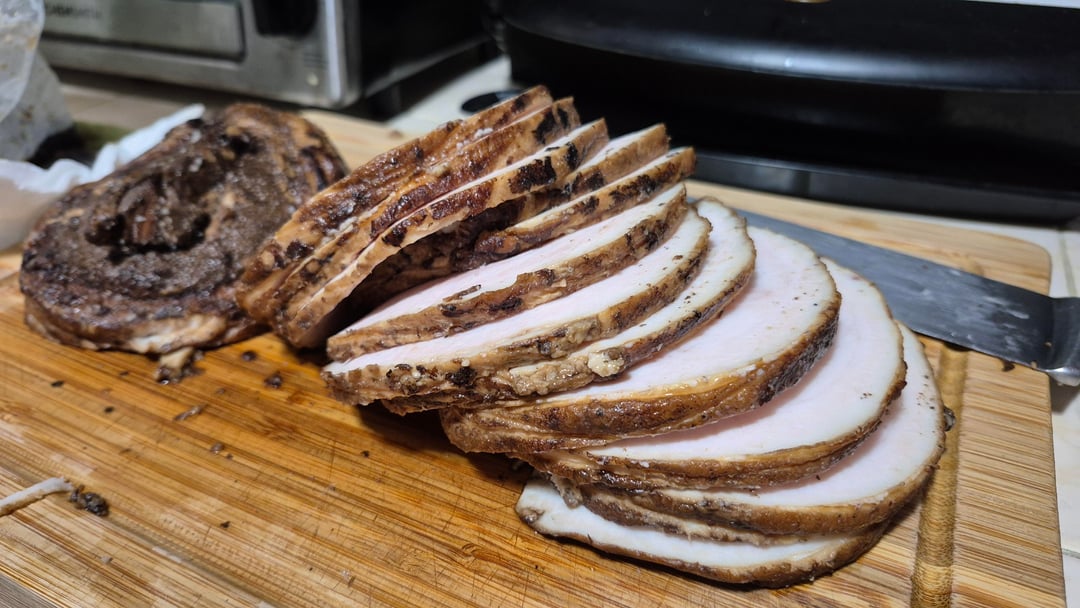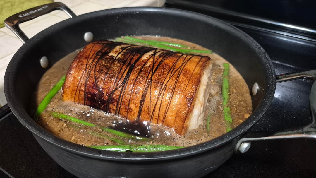 After feedback on my last attempt, I tried the more involved process. I think for quick mid-week meals I'd opt for pork belly strips, but for hosting, potluck, or family events I might take the longer route.
