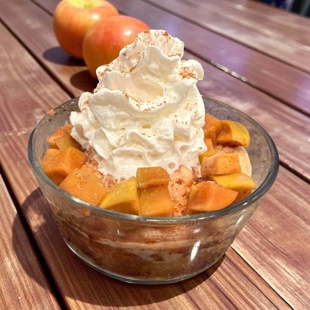 Finely dice apple, mix with sugar substitute of choice, apple pie spice (measure with your heart) and a splash of lemon juice. Cook until apples are softened (15 minutes on the stove or 4-5 minutes in the microwave).