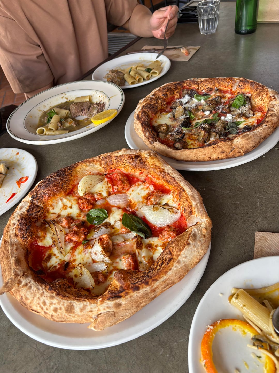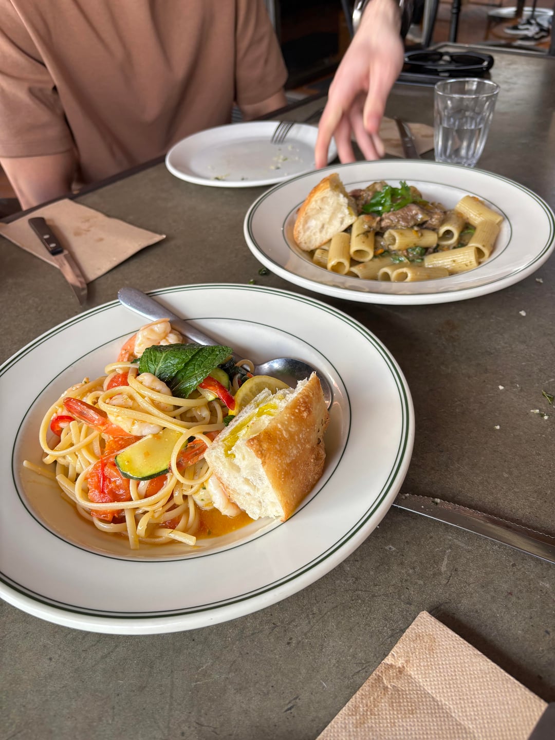 I had 3.5 slices of each pizza. One is an eggplant pizza, the other is cheese and onion (I didn’t eat the meat). I then had 1/4 of each pasta – seafood linguine and beef ragu rigatoni (I didn’t eat the meat).by euphoric-alpaca Dining and Cooking