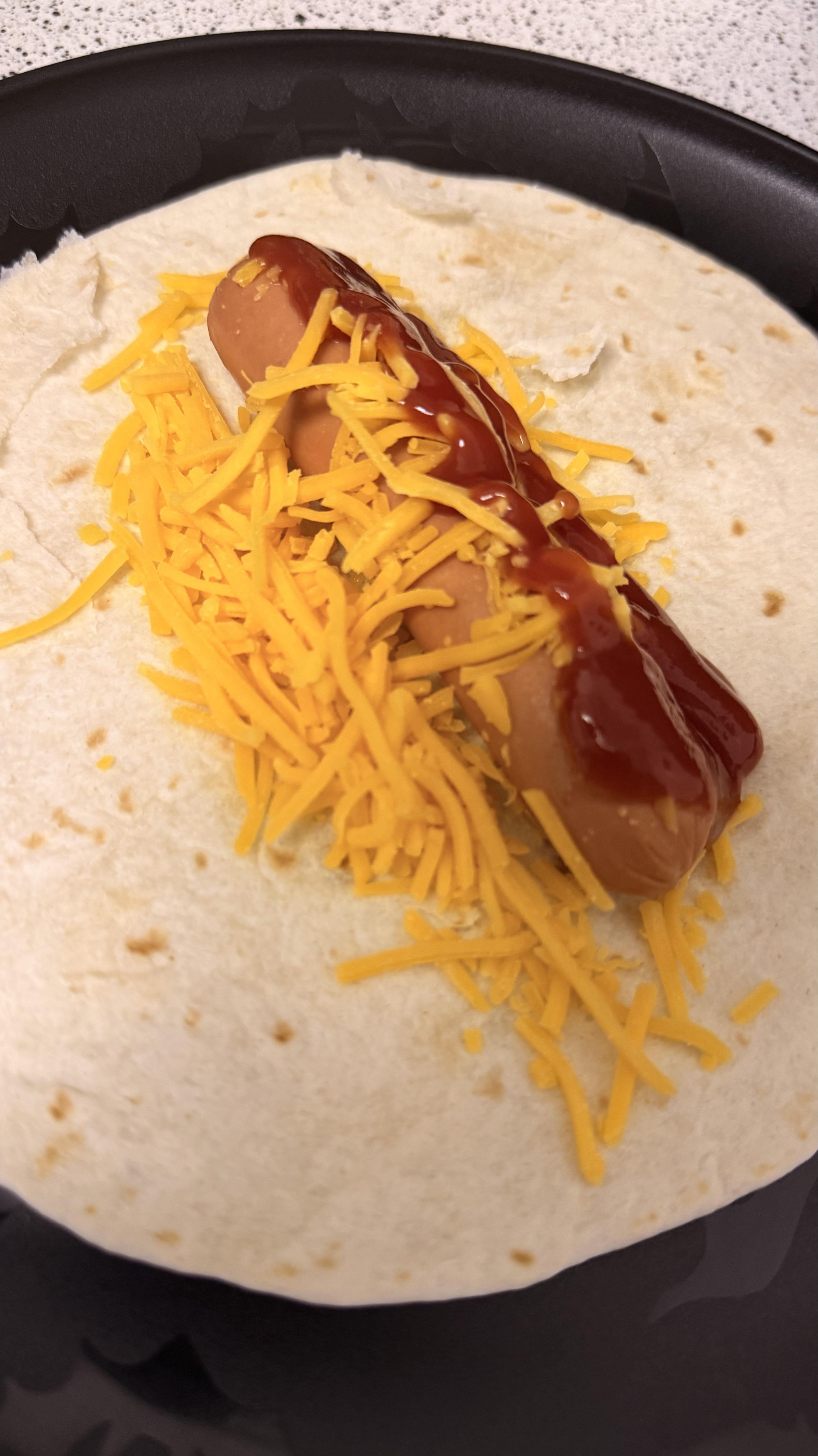 Tortilla last way longer than buns. I’ve been doing this for years lol. But toast the tortilla and melt the cheese on it then roll the dog into it. Like a quesadilla with hotdog. Also, use good sausage, makes a world of difference.