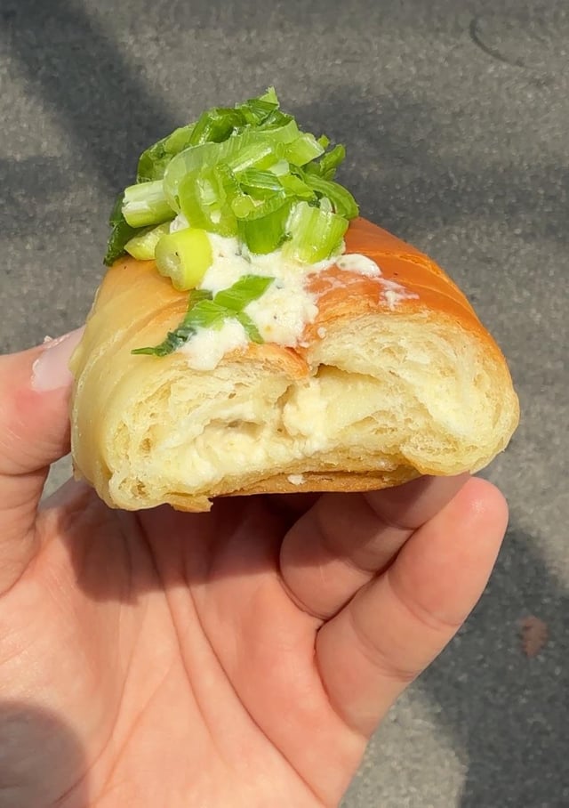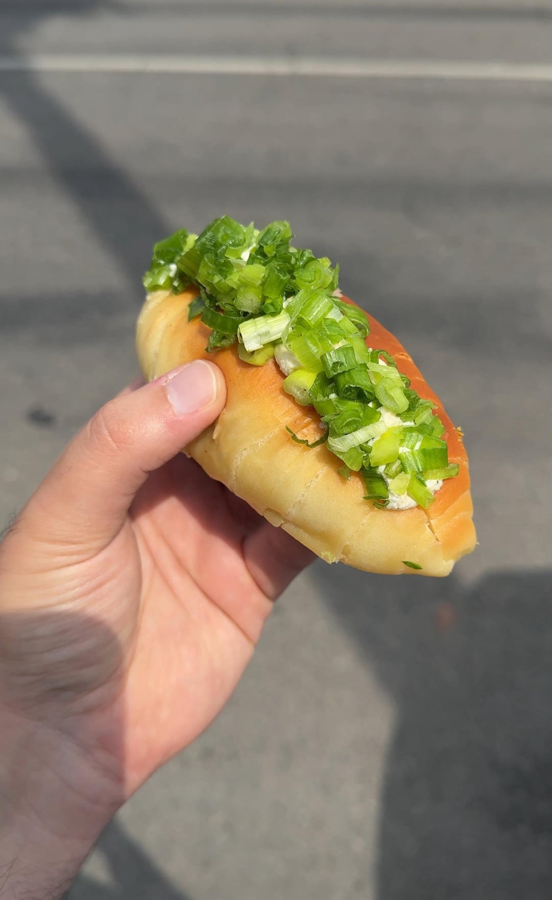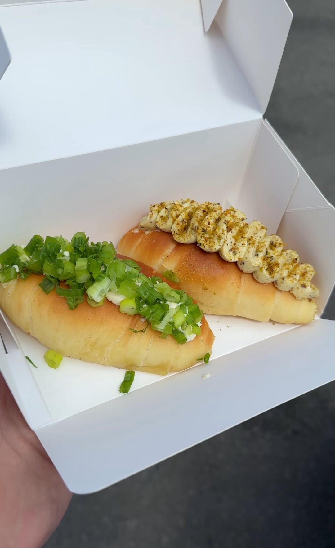 Both were fantastic. The bread itself is the same for either type of bread. it’s soft, slightly salty, and has a nice crust. The garlic onion cream cheese is savory, with a thick cream cheese filling and the perfect amount of green onions on top.