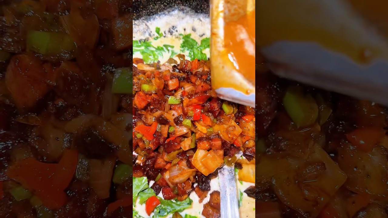 3. In the same pan, sauté onion, bell pepper, and garlic until fragrant. Set aside with bacon.