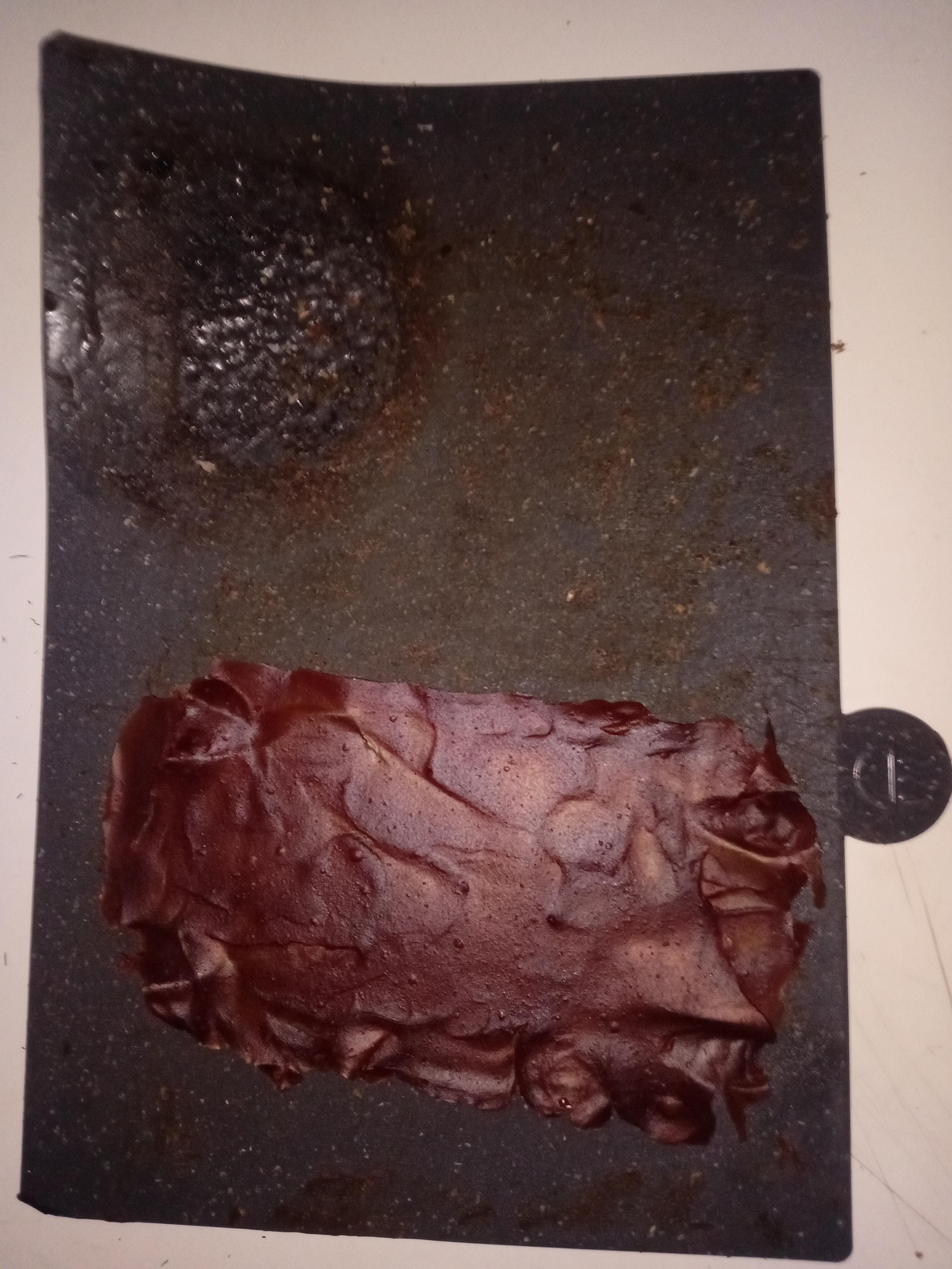 Just spread it on a flat surface like a plate or cutting board and let it dry (no dehydrader or oven needed) just be carefull when you peel i it of. Perfect for camping or fishing trips!