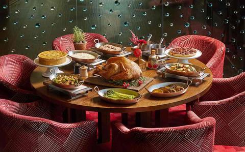 The main menu is slow-roasted turkey and homemade Porchetta that are carved and served directly at the guest’s table by the hotel chef, which adds to the attraction.