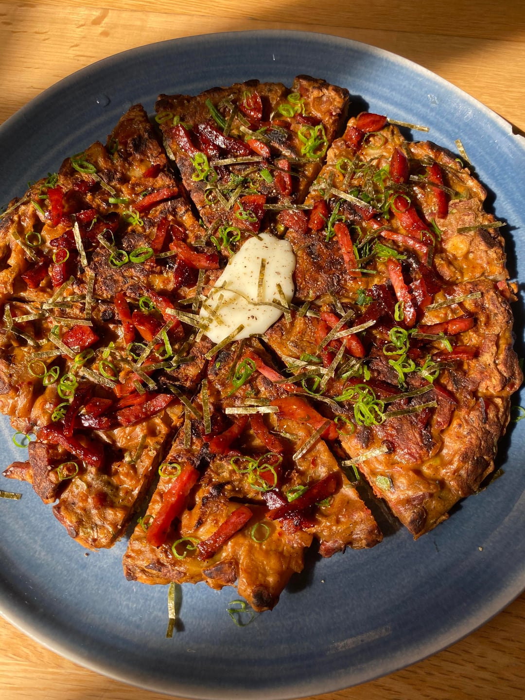 What is picture 3 & 4, looks like some kind of Korean pancake or quiche but also kind of a pizza???