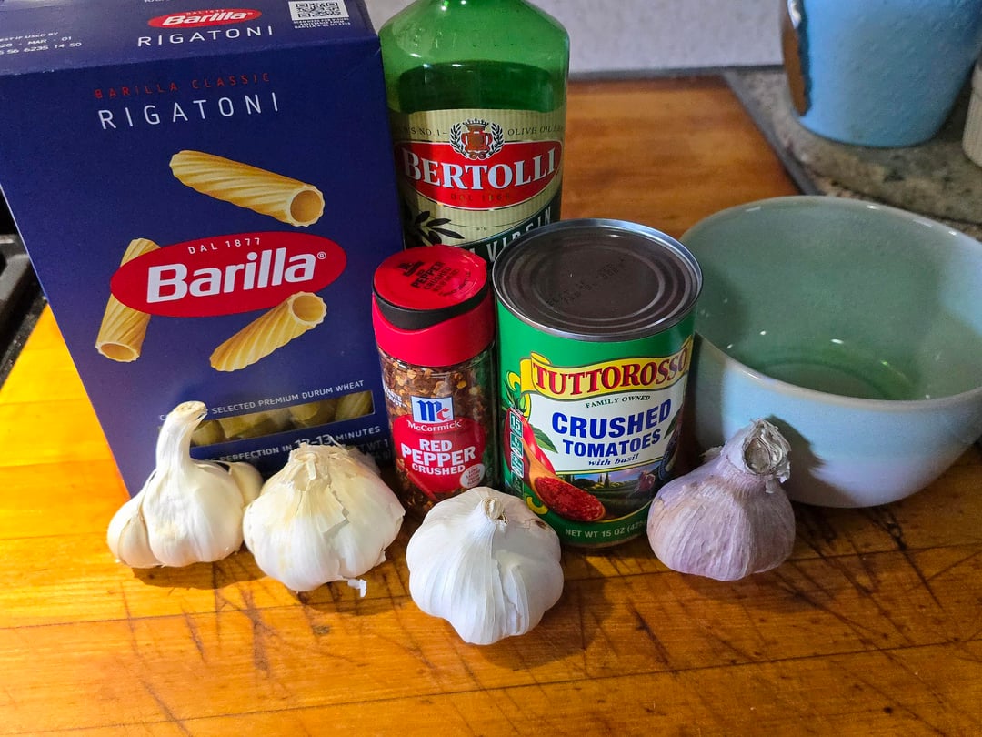 Based on a meme I saw the other day. I decided to confit the garlic and immersion blend it with the tomatos, olive oil, and some pasta water. Also added some lemon juice to tame the richness. It's actually really good!