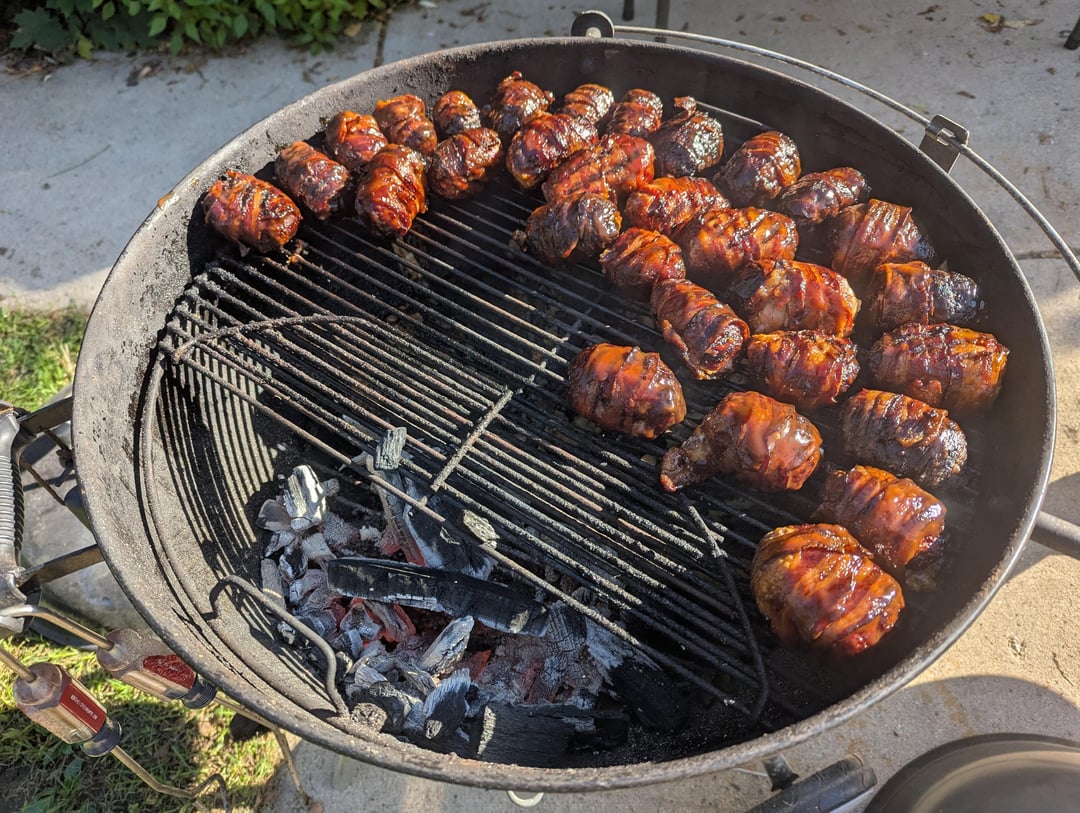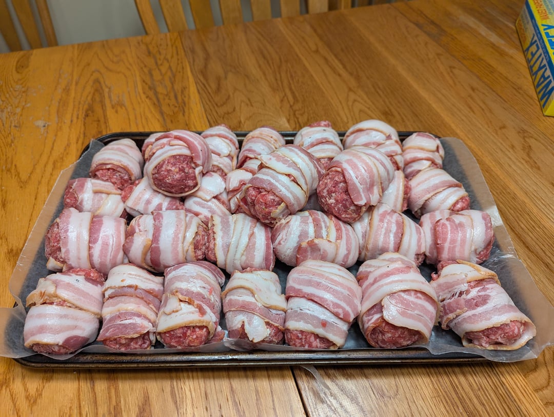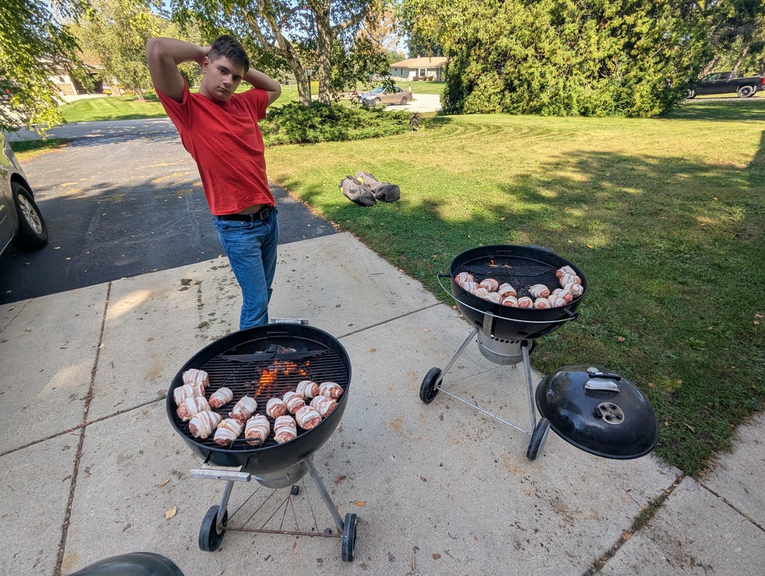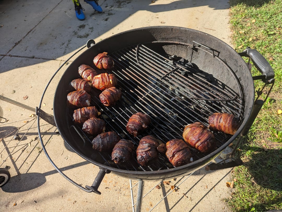 Armadillo eggs for a party at a friend’s house. by 2PhatCC 6 Comments pcurepair 4 weeks ago Hell yeah let’s go!!!! SiDD_x 4 weeks ago Bacon Wrapped Jalapeno Poppers!!! pushupbro 4 weeks ago Hell yes, now move on to pimento cheese. WaltetMatthouch 4 weeks ago Grill looks good, lawn looks good, winning combo. Conscious-Wolf-6448 4 weeks ago Mamadas GalacticaCNC 4 weeks ago First timer here. I’m always super curious about heat and length of time on. Any direct heat to get the bacon going? What’s the methodology here?