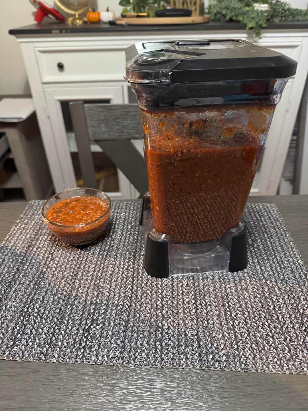 Added all to the blender with salt, onion powder, garlic powder, cumin, apple cider vinegar, and lime juice.