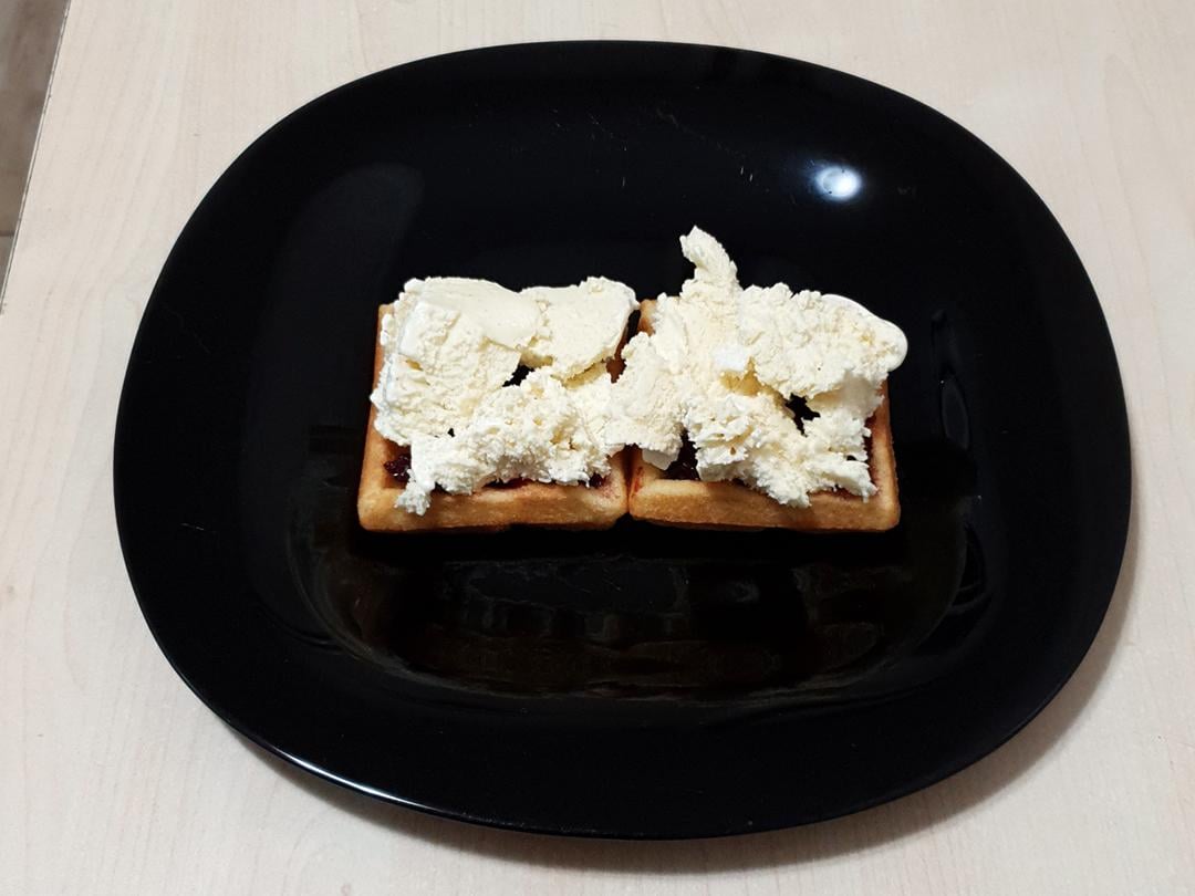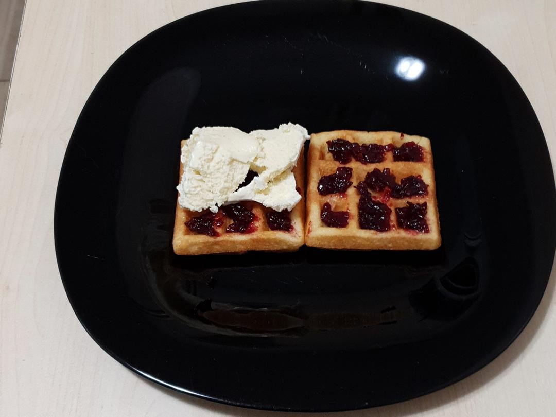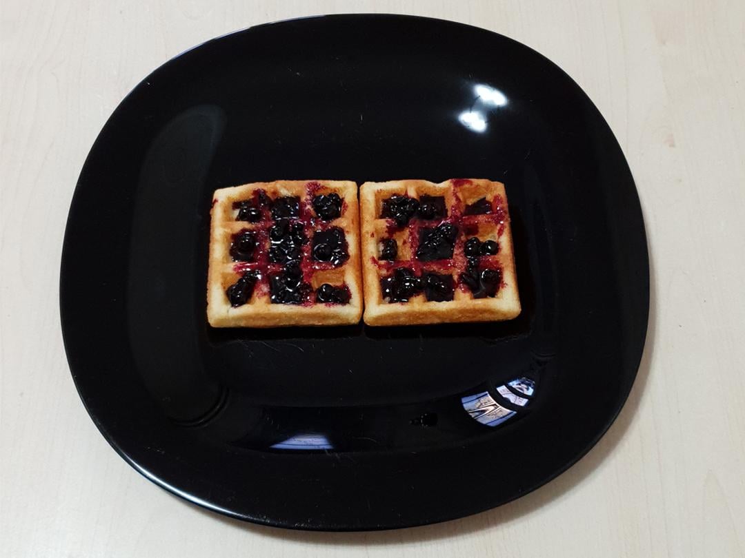 1. Quattro Formaggi + tomatoes, egg yolks and 4 Seasons pepper. 2. Quattro Formaggi + tomatoes and olives. 3. Quattro Formaggi + caramelized red onions. 4. Waffles, sour cherry jam and vanilla ice cream. 5. Waffles, blueberry jam and coffee (not in the image). 6. Probably my new Halloween breakfast.